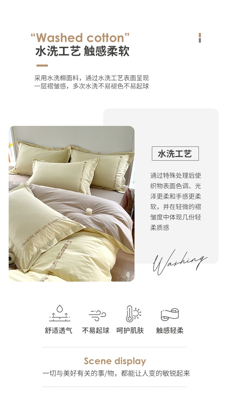 (总)拼社家纺 2025新款母婴及全棉水洗棉刺绣四件套纯棉床上用品,艾玛绿+卡其,繁星蓝+卡其,繁星蓝+玫瑰粉,红豆沙+雅灰,迷雾灰+玫瑰粉,蜜粉+雅灰,奶油白+卡其,奶油白+香橙,牛仔蓝+浅蓝,香橙+雅灰