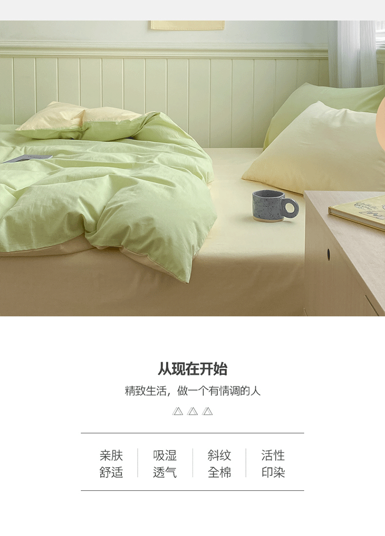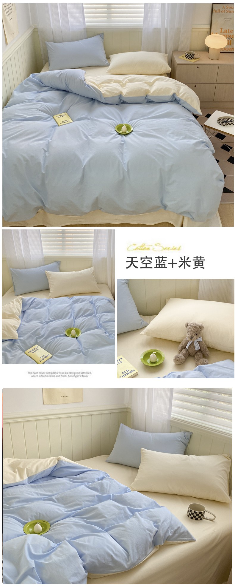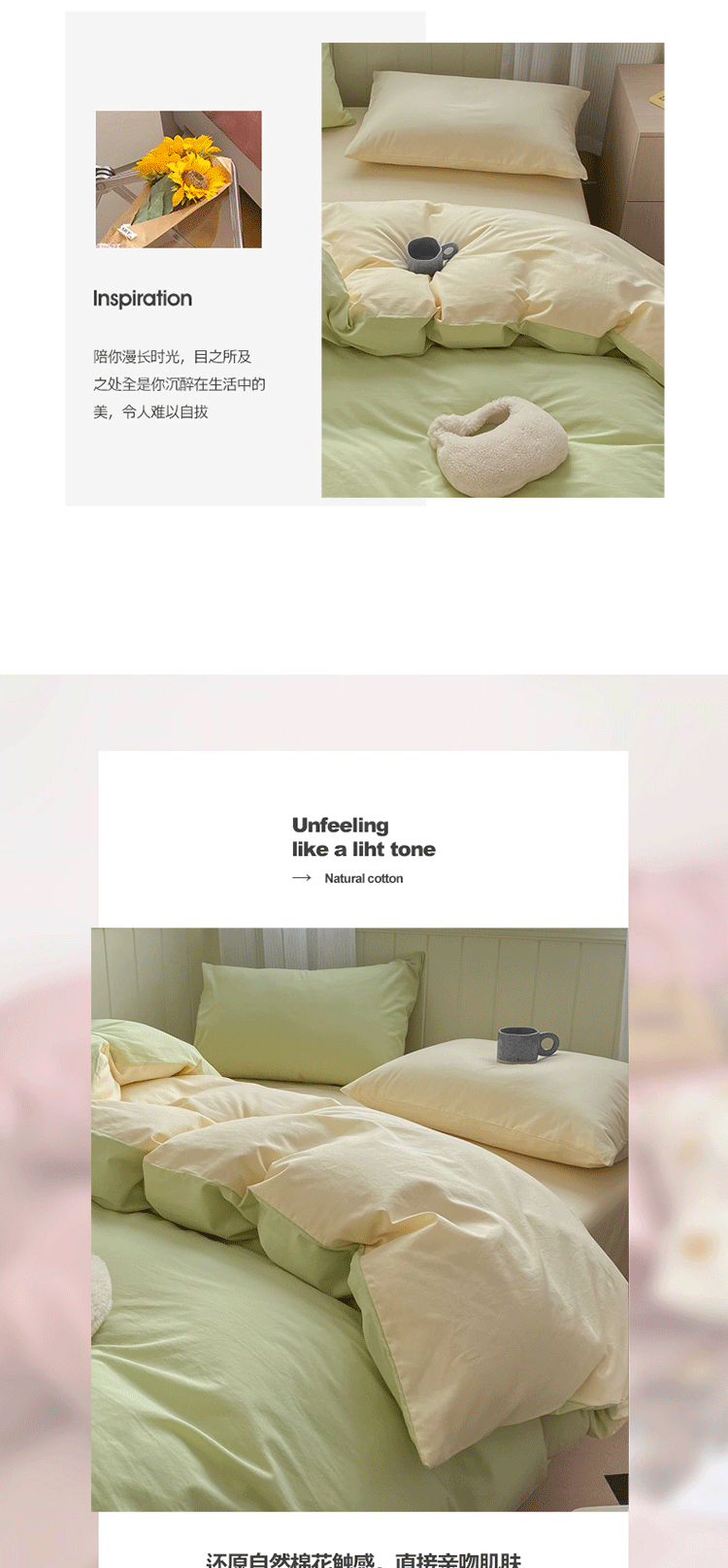 (总)三朵家纺 2026新款ins风全棉纯色双拼水洗棉四件套极简风系列,风青月白,焦糖曲奇,蓝韵雾纱,流光奶绿,抹茶奶黄,浅蓝芝士,香芋奶昔,烟墨灰,云纱可可