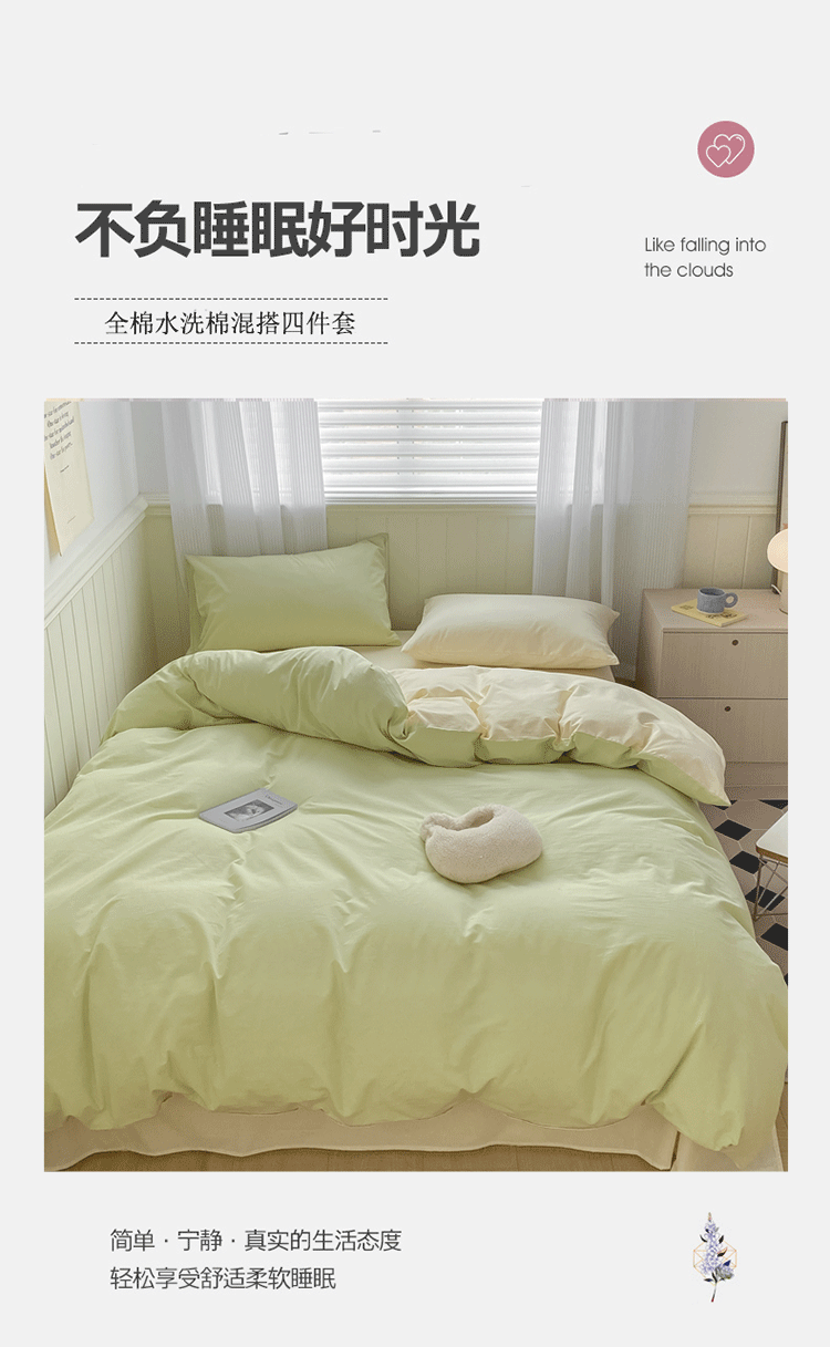(总)三朵家纺 2026新款ins风全棉纯棉水洗棉少女系四件套-玛卡龙系列,马卡龙-葱绿,马卡龙-淡粉,马卡龙-粉绿,马卡龙-米咖,马卡龙-米蓝,马卡龙-浅紫,马卡龙-蔚蓝,马卡龙-薰衣草