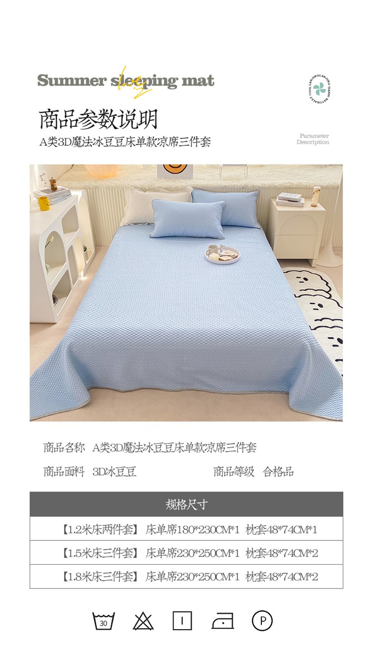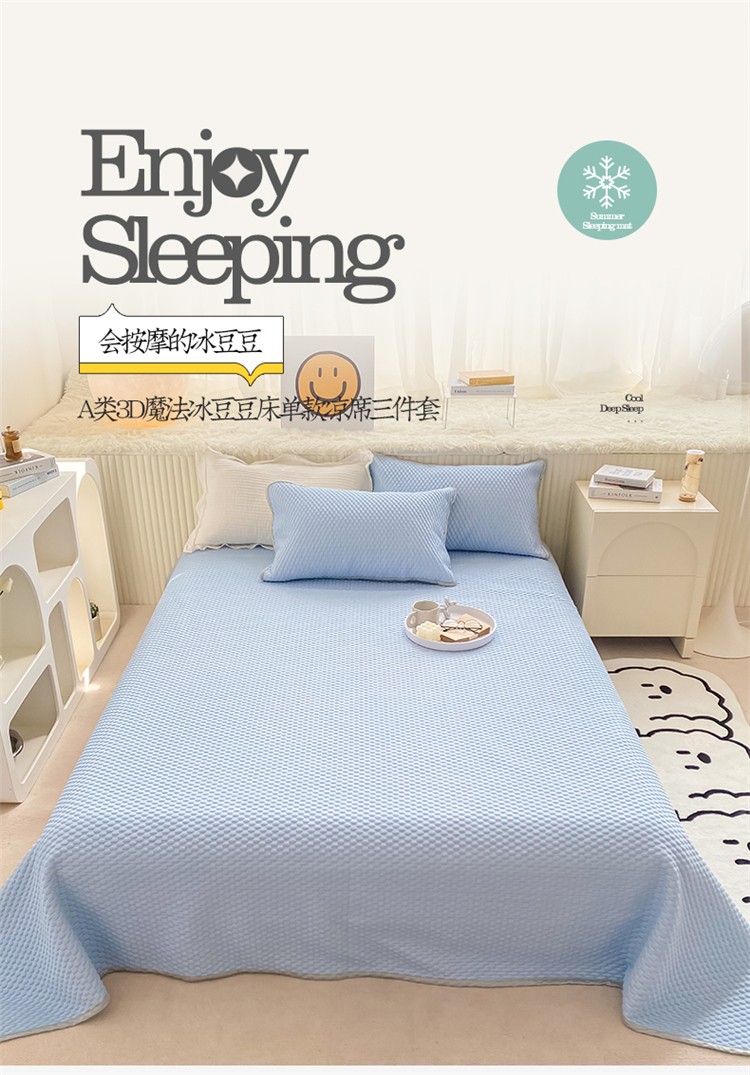 桃子家居 2022新款A类3D魔法冰豆豆科技凉席三件套床单款 床单款-蓝