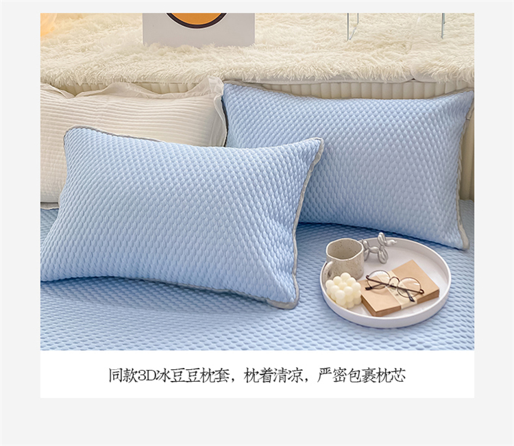 商品名称:桃子家居 2022新款A类3D魔法冰豆豆科技凉席三件套床单款 床单款-蓝
