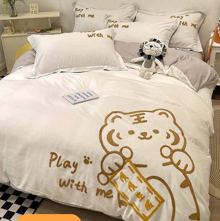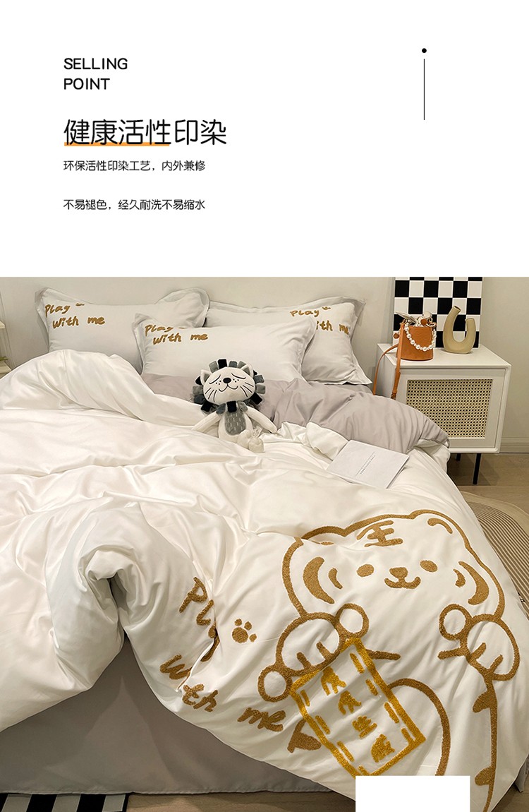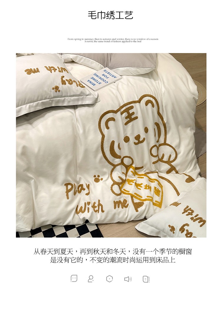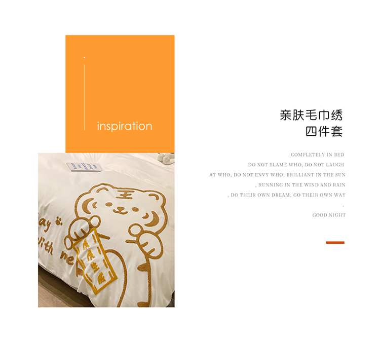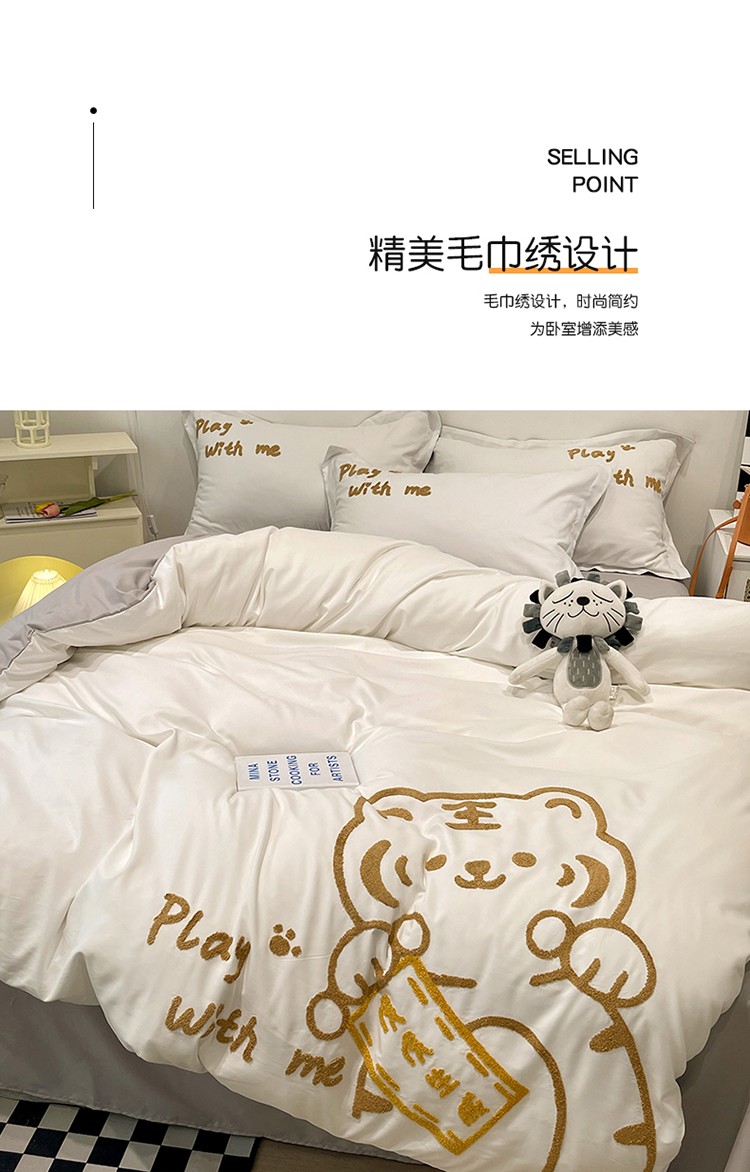 商品名称:娜娜 2022新款亲肤毛巾绣四件套 幸运虎-白灰