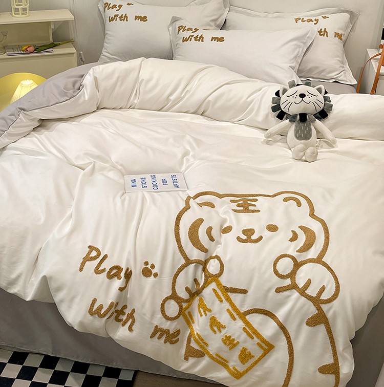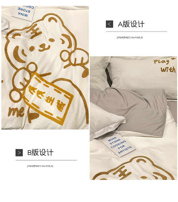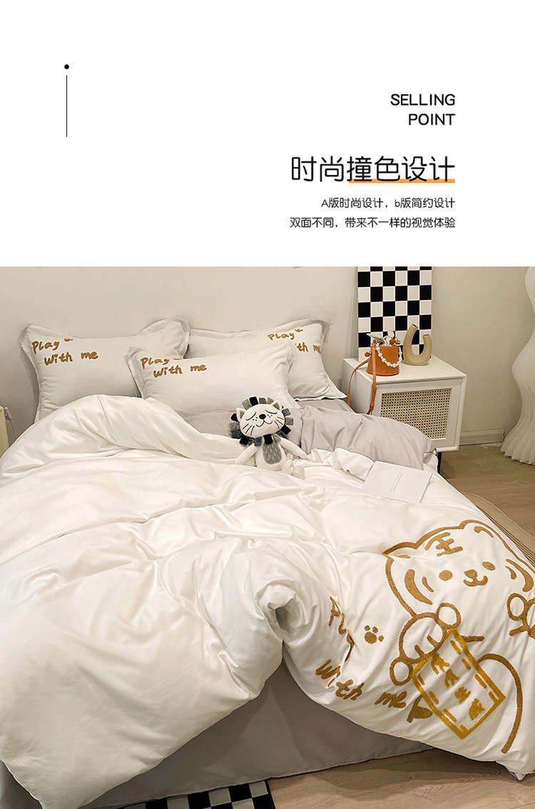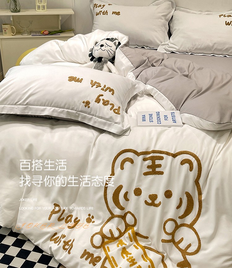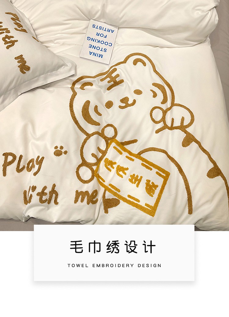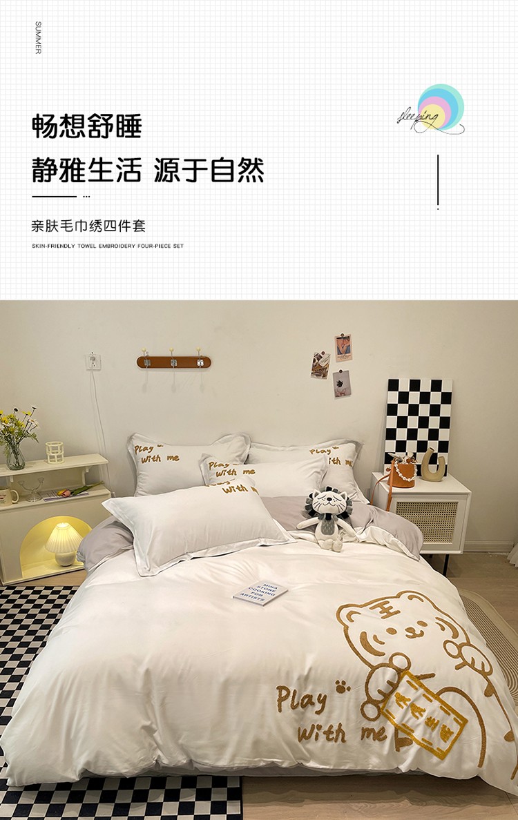 商品名称:娜娜 2022新款亲肤毛巾绣四件套 幸运虎-白灰