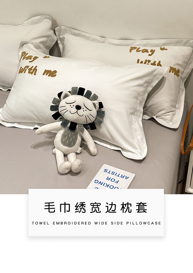 娜娜 2022新款亲肤毛巾绣四件套 幸运虎-白灰