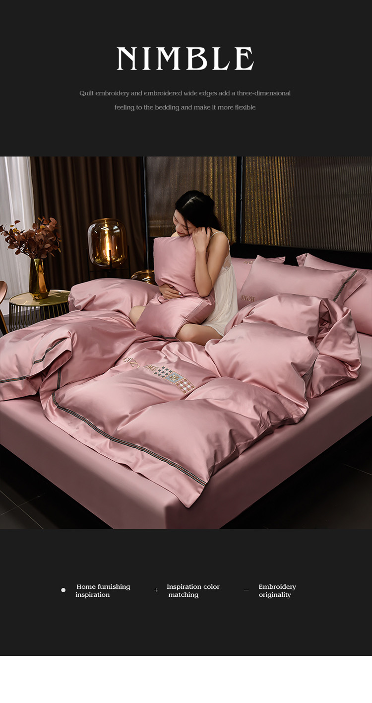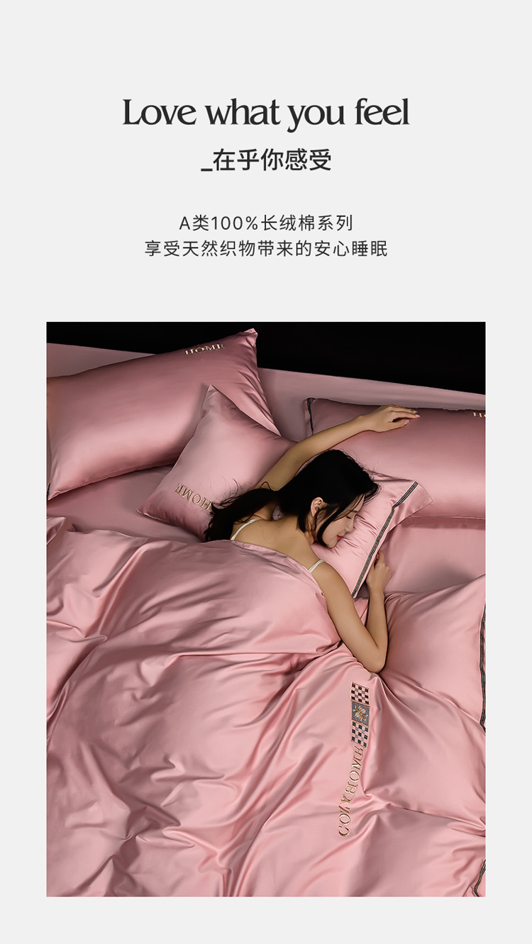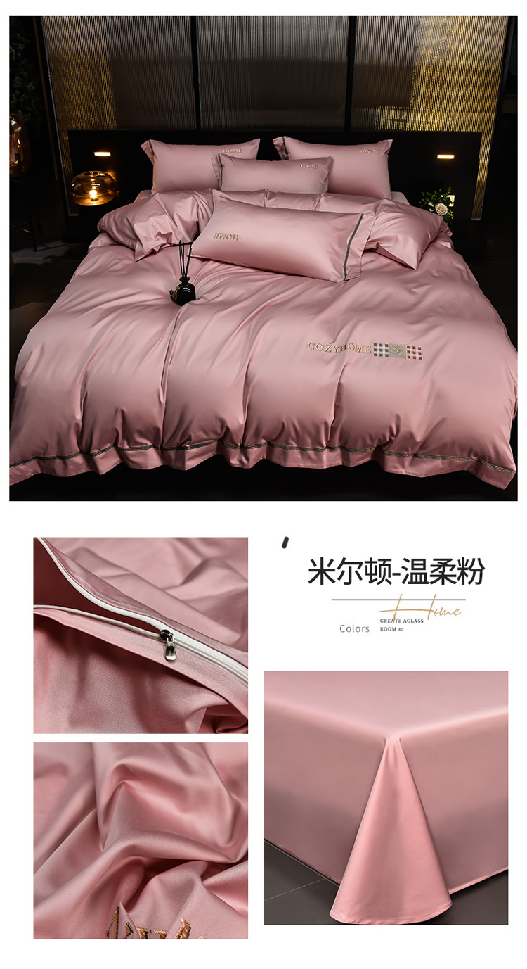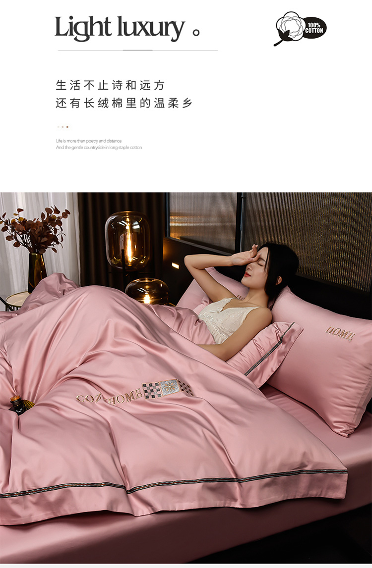 (总)瑞驰家纺 长绒棉绣花四件套-锦瑟,豆沙红,宫廷黄,极光红,金属咖,魅影蓝,藕粉,圣女紫,松绿,香芋紫