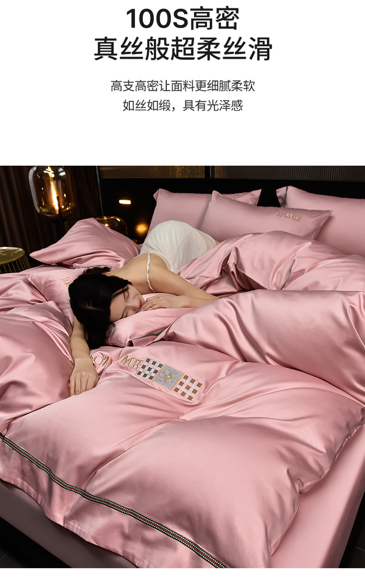 (总)瑞驰家纺 2025新款长绒棉绣花莱桉系列四件套,莱桉-贝壳白,莱桉-朵拉灰,莱桉-驼褐,莱桉-棕橙