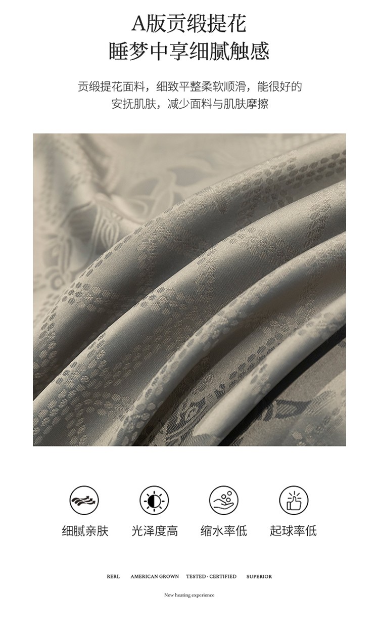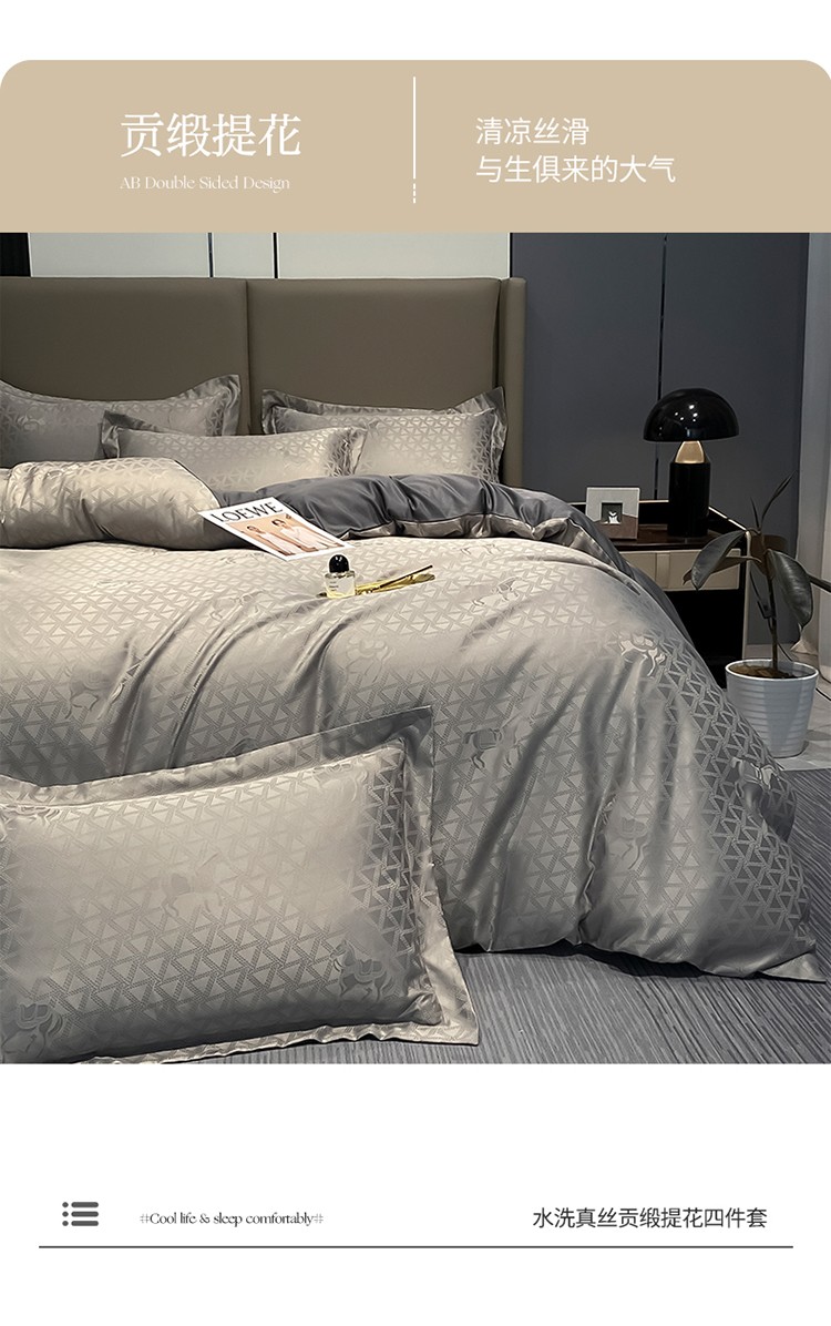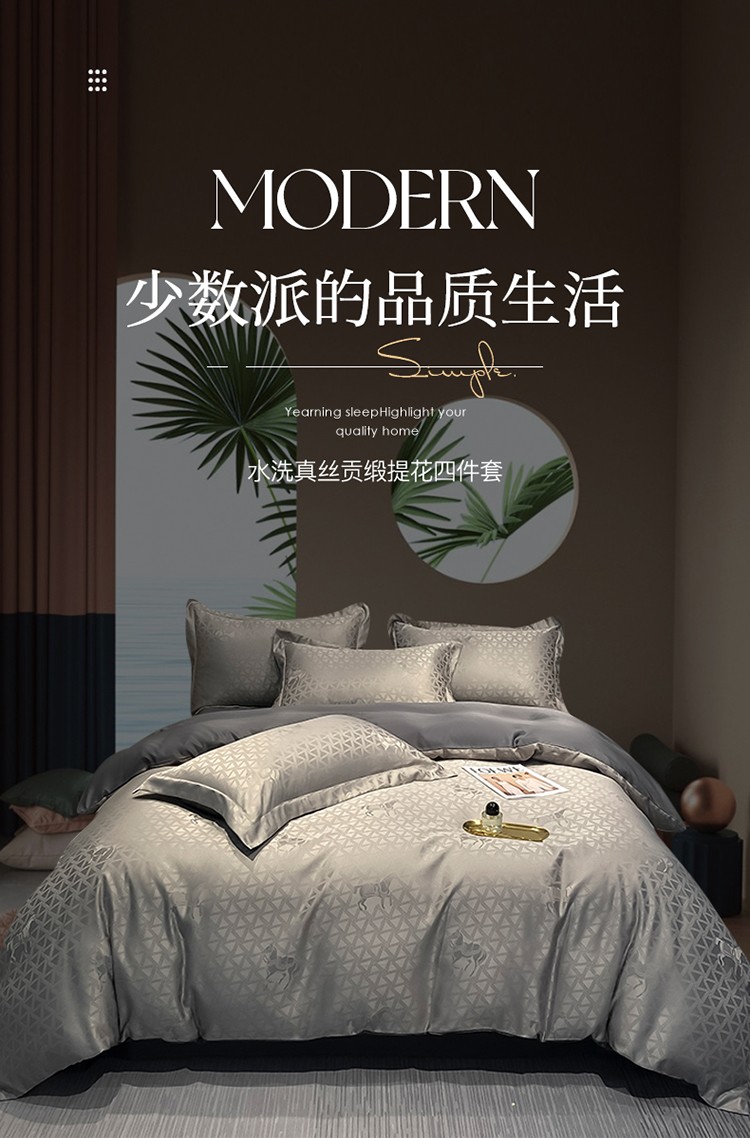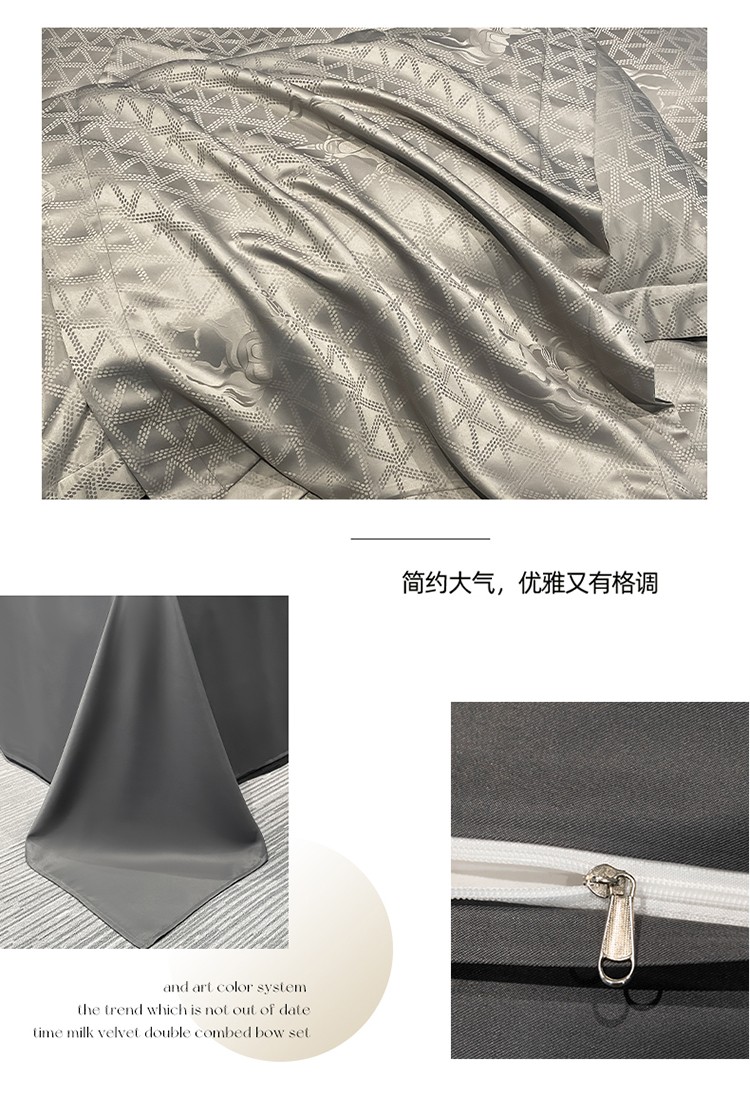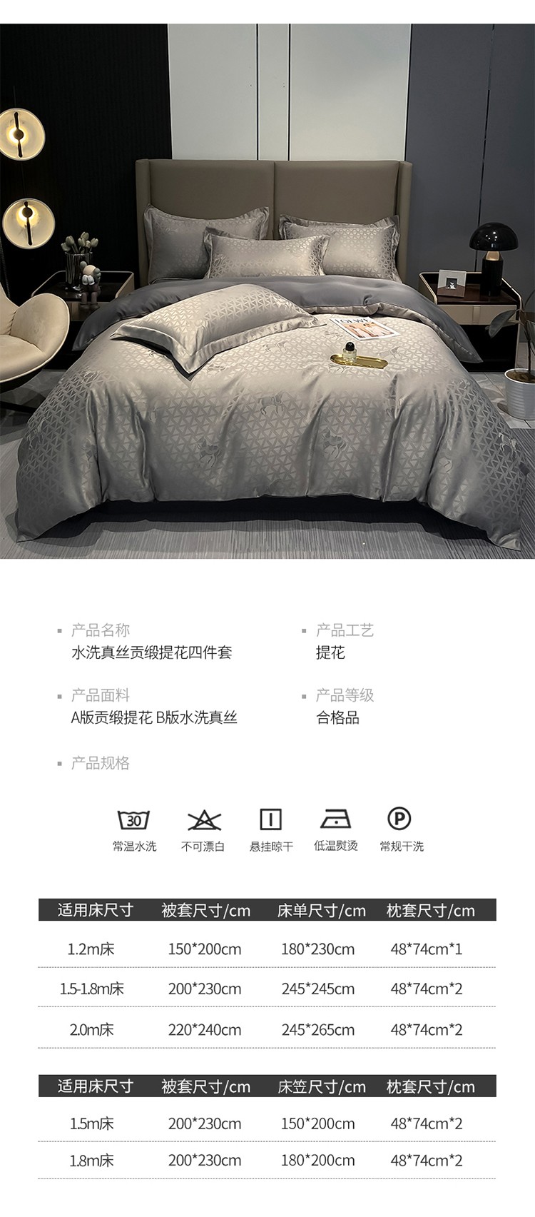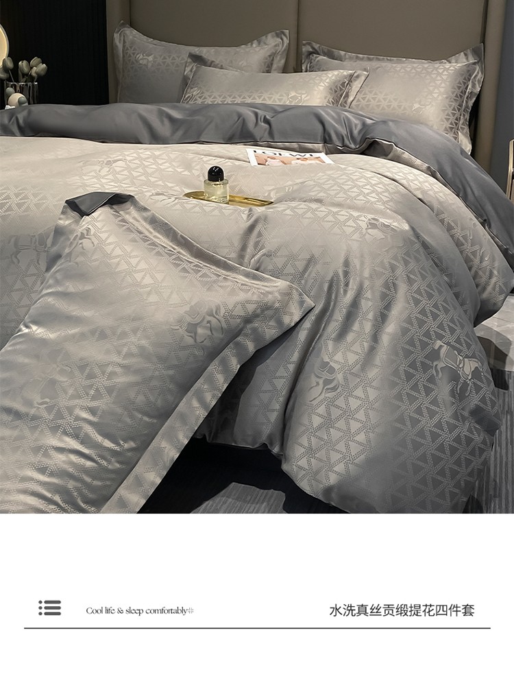 商品名称:遇见家居2022新款水洗磨毛亲肤棉贡缎提花四件套 柏林-深灰