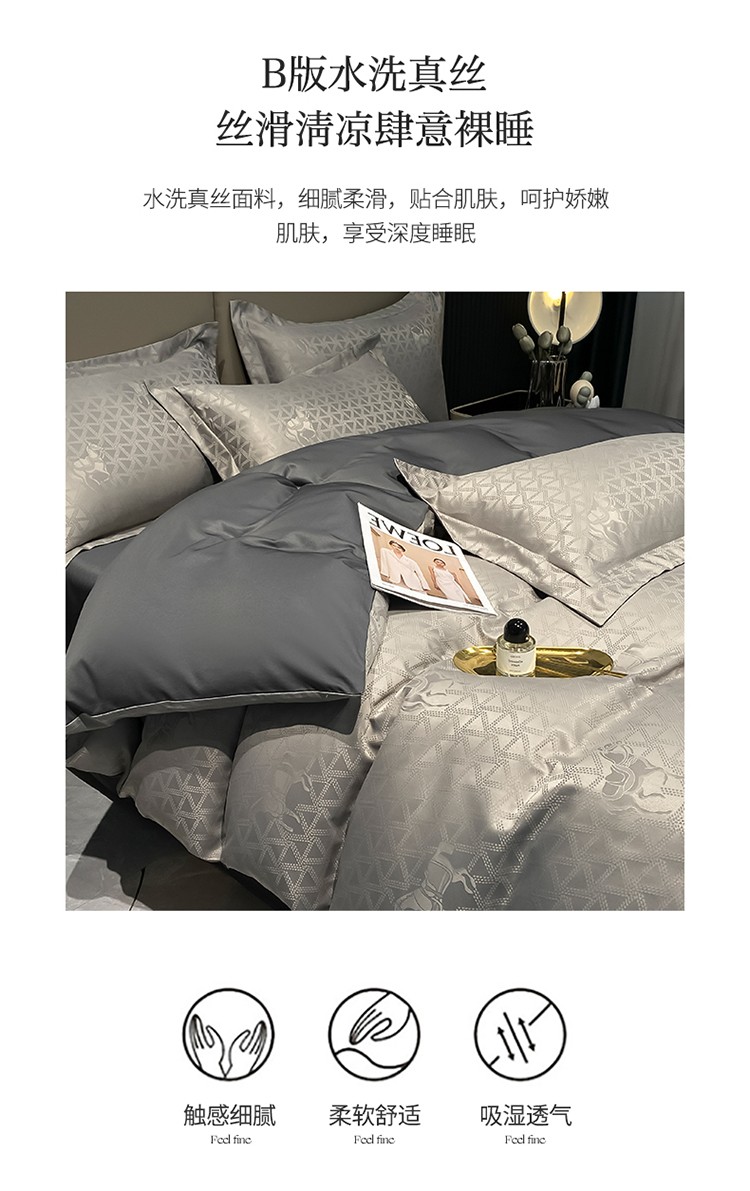 遇见家居2022新款水洗磨毛亲肤棉贡缎提花四件套 柏林-深灰