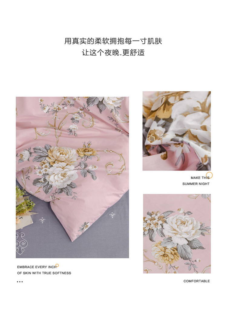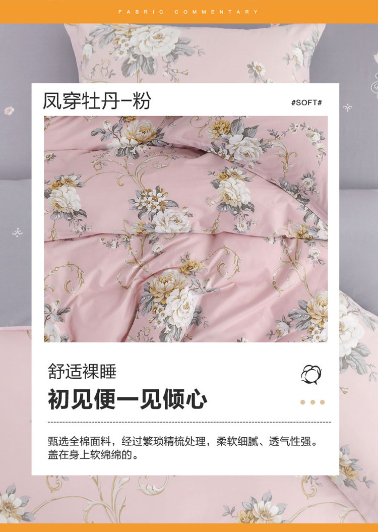 商品名称:星期三 2022新款铂金全棉13372四件套(加老板微信有会员价) 凤穿牡丹-粉