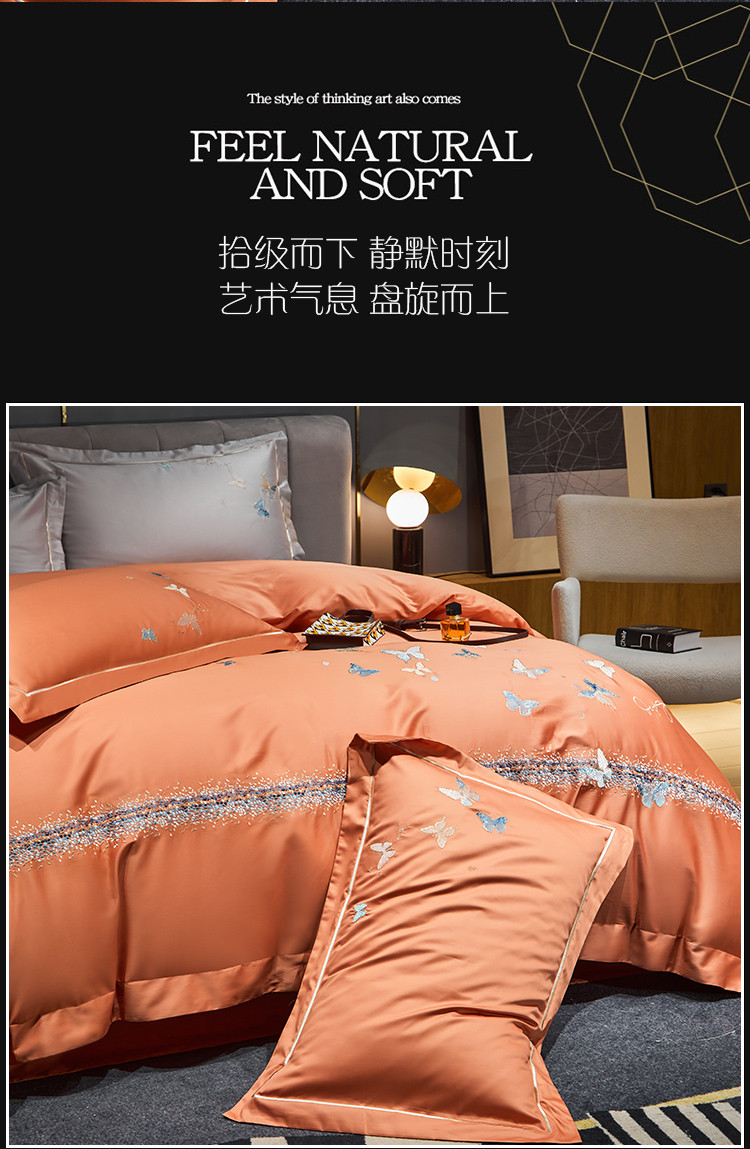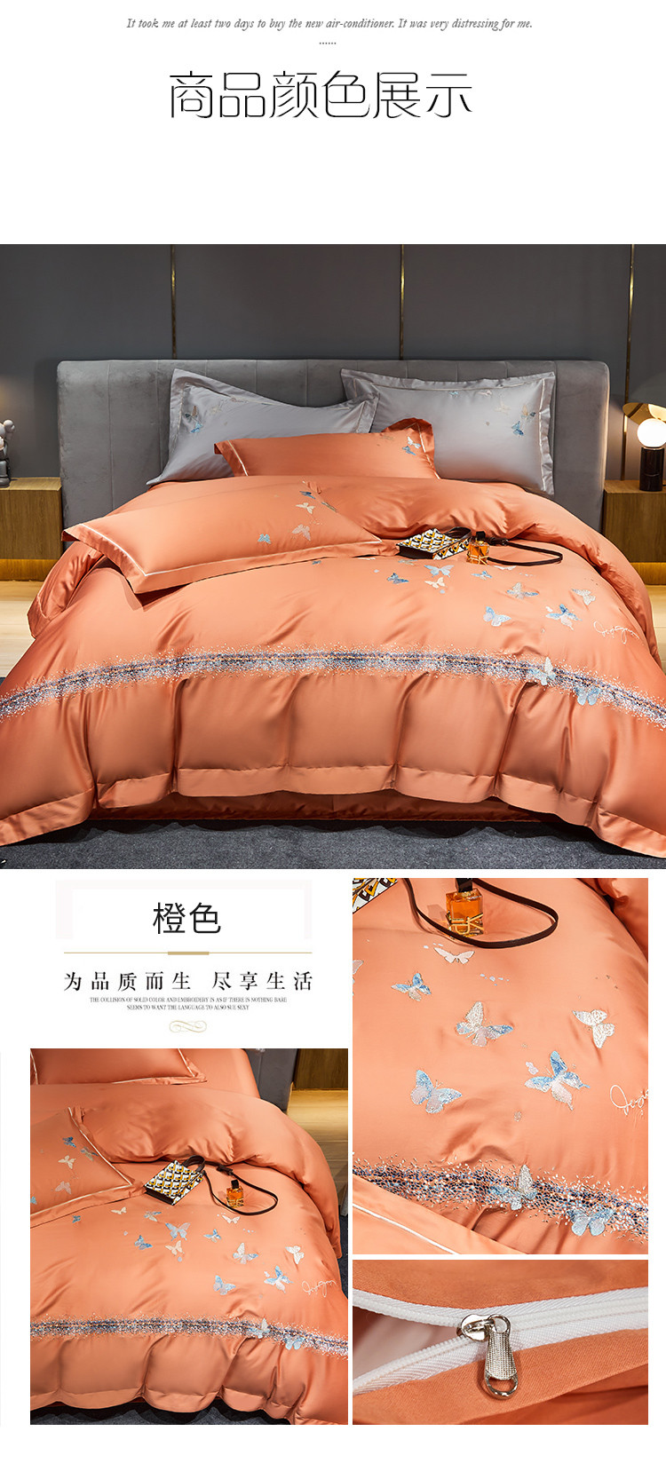 (总)惠居家 2023新款 120支长绒棉利亚款四件套,宝石蓝,橙色,豆沙,高级灰,卡宴蓝,温馨紫