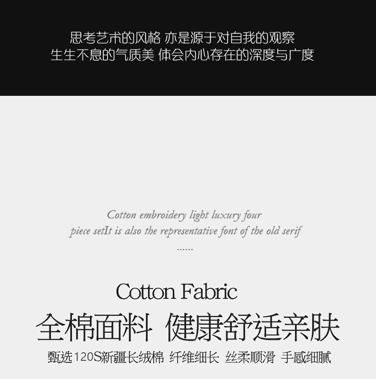 (总)惠居家 2023新款120支长绒棉刺绣四件套希曼系列,薄荷绿,宾利兰,豆沙,灰色