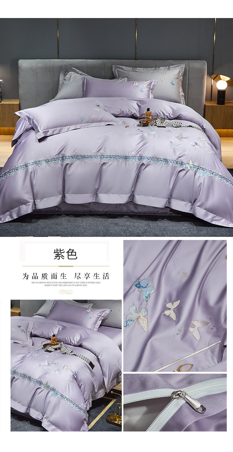 (总)惠居家 2022新款长绒棉刺绣四件套蝴蝶