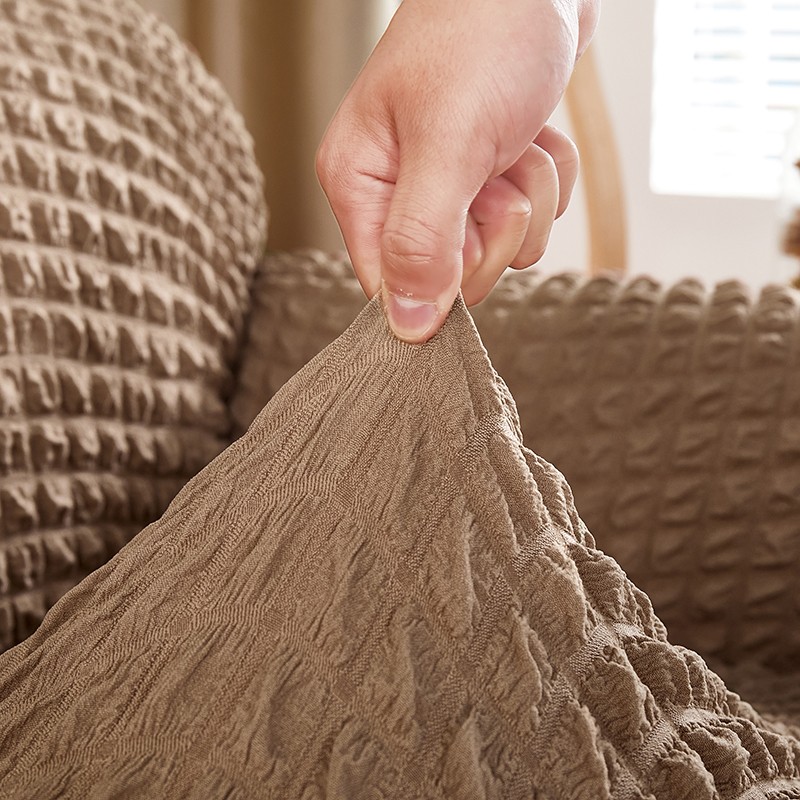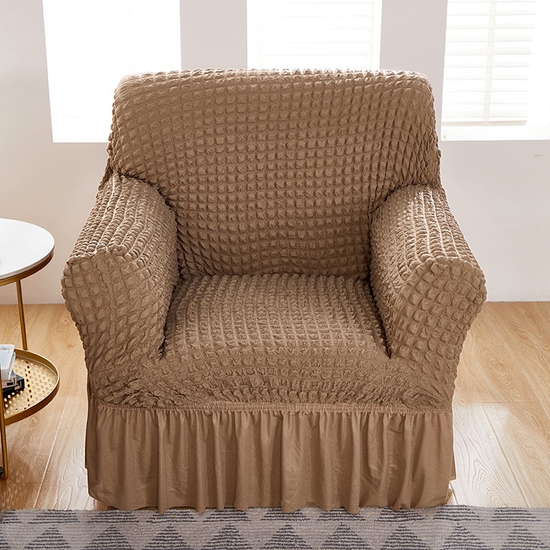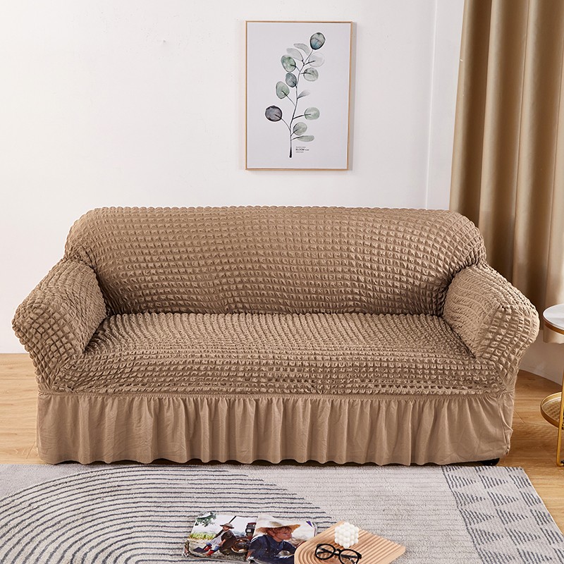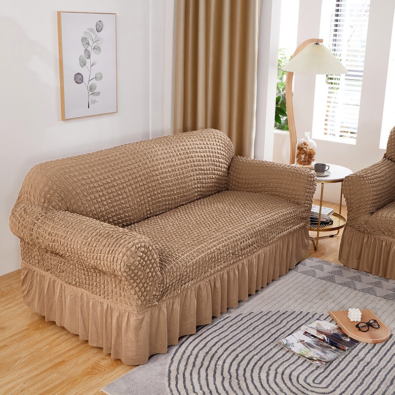 商品名称:逐日沙发套 2023新款泡泡爆米花裙摆款沙发套 驼色