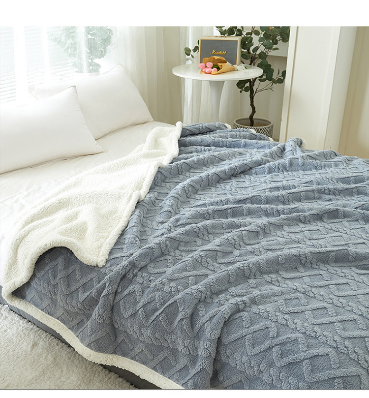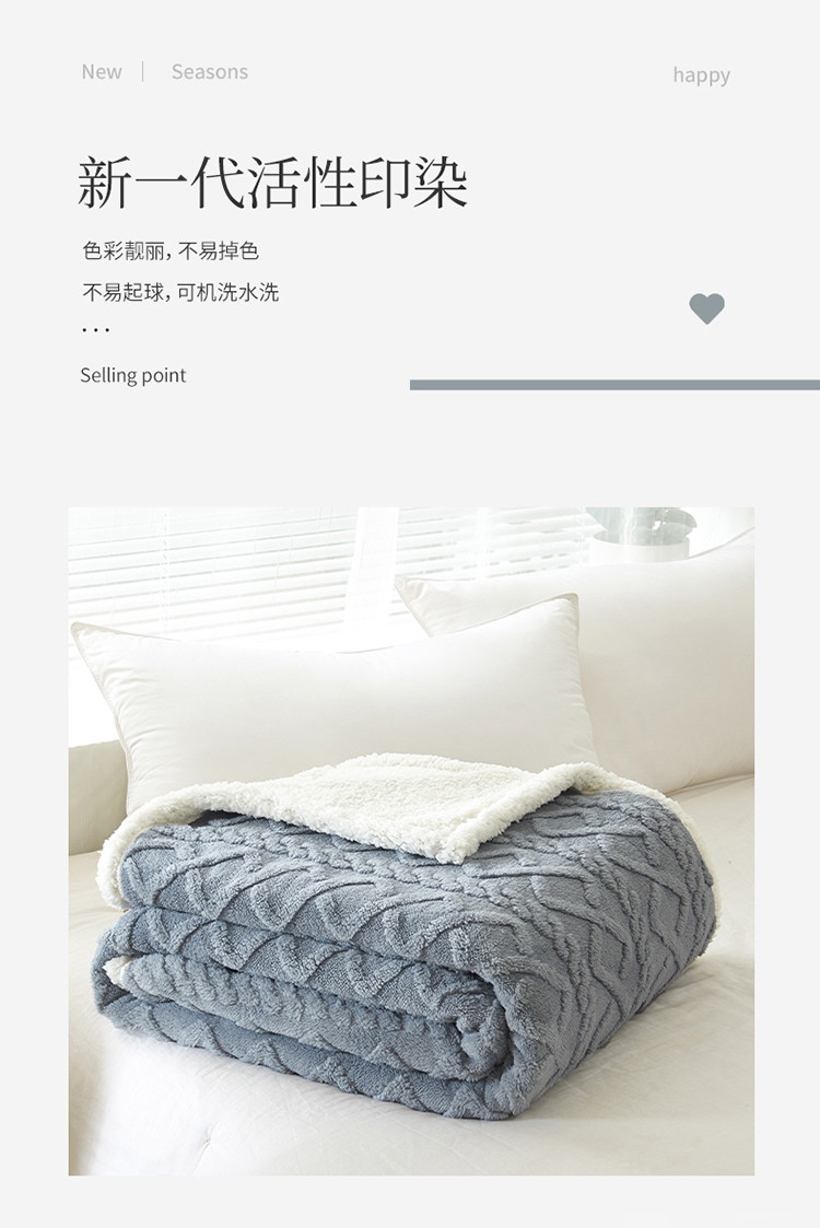 (总)馨米莱家纺 2025新款AB版牛奶绒提花纯色多功能盖毯毛毯,兰色,裸粉色,米灰色,米咖,浅驼,深咖,嫣红色
