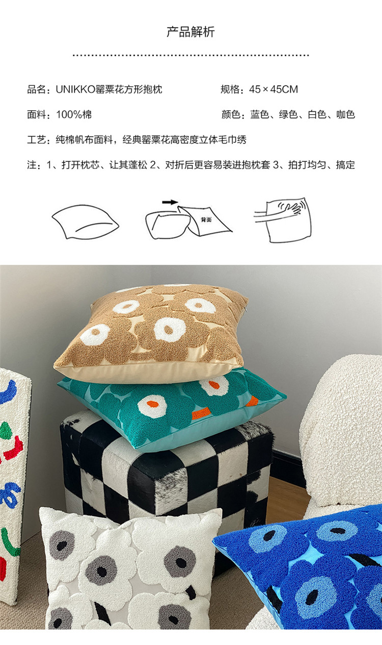 商品名称:美茉 2022新款花方形抱枕 绿色