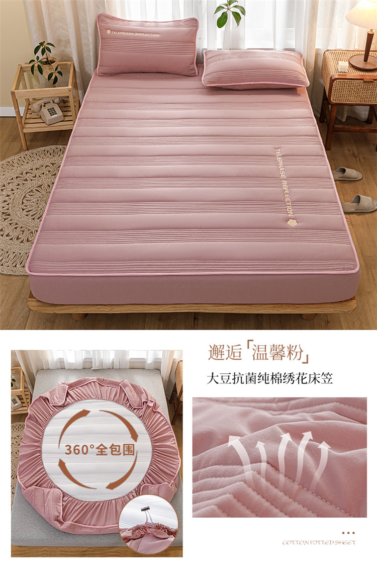 (总)鑫钰 2025新款A类纯棉夹棉床笠学生宿舍专用90x190-80x190-花漾山茶格,花漾山茶格-粉,花漾山茶格-蓝,花漾山茶格-灰