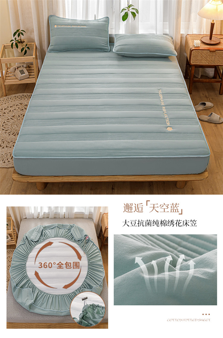 商品名称:(总)鑫钰 2023新款色织水洗纯棉全棉夹棉绣花床笠夹棉枕套