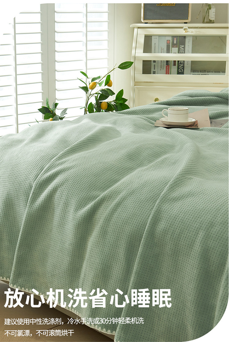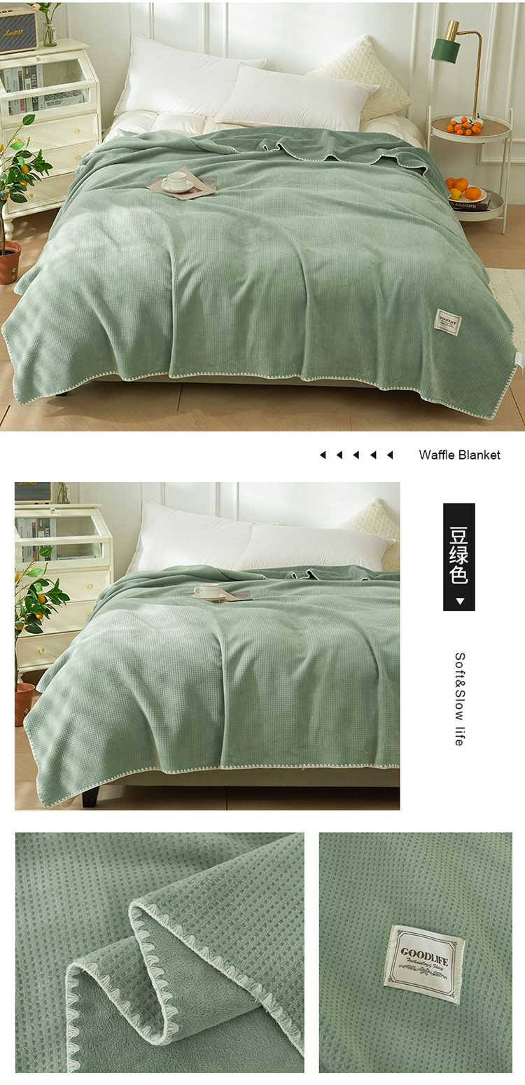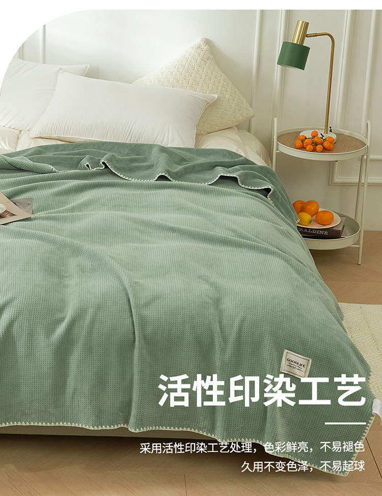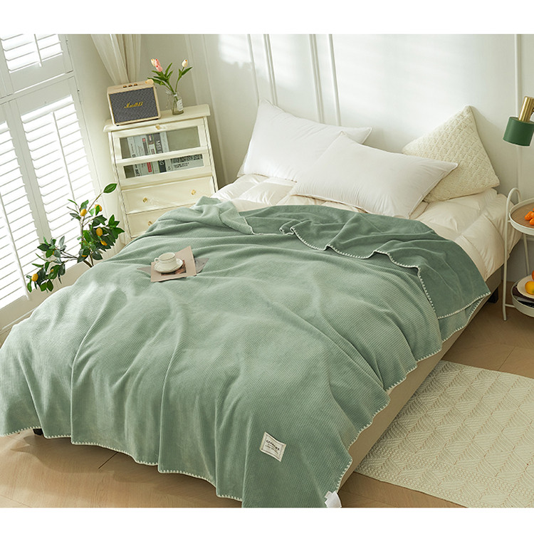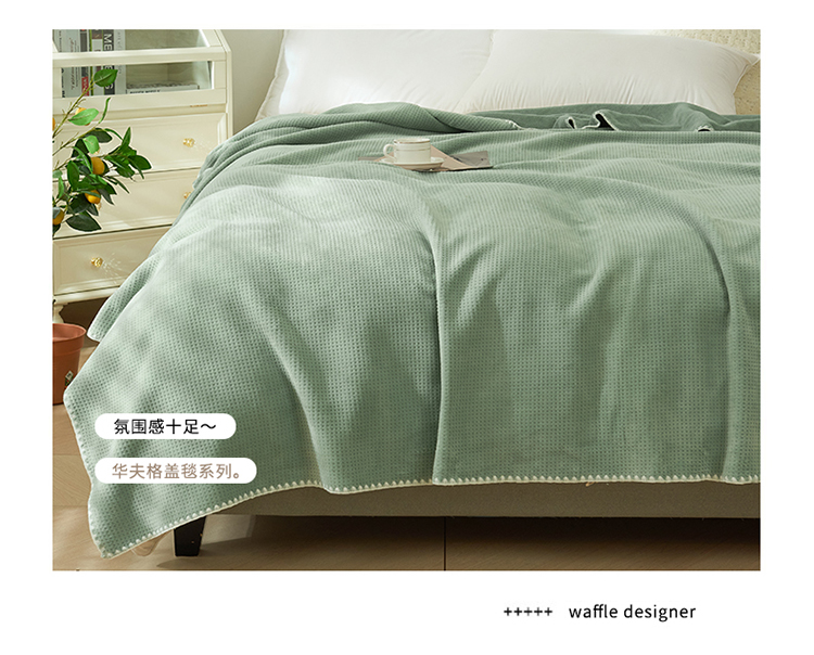 商品名称:馨米莱 2024新款华夫格毛毯牛奶绒夏被毯空调毯 豆绿色