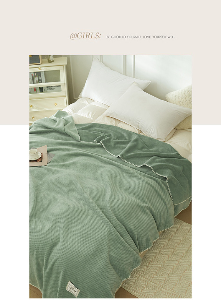馨米莱 2024新款华夫格毛毯牛奶绒夏被毯空调毯 豆绿色