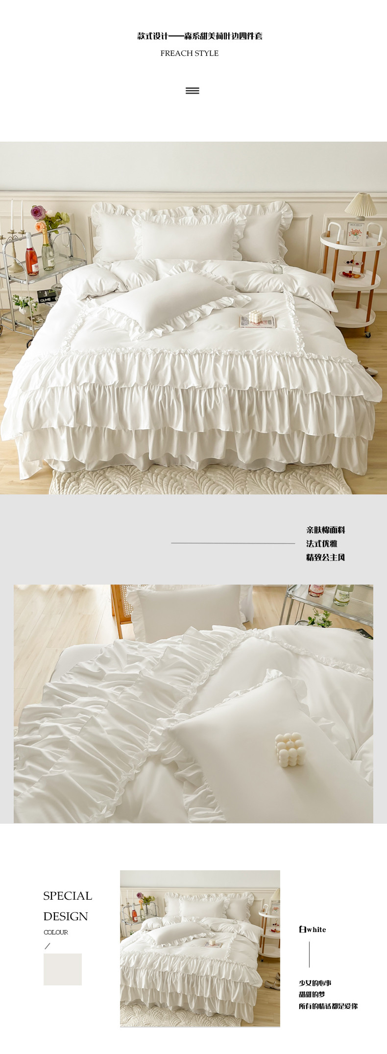 商品名称:乐卧家居 2026新款贝拉花边系列四件套 贝拉-奶油白