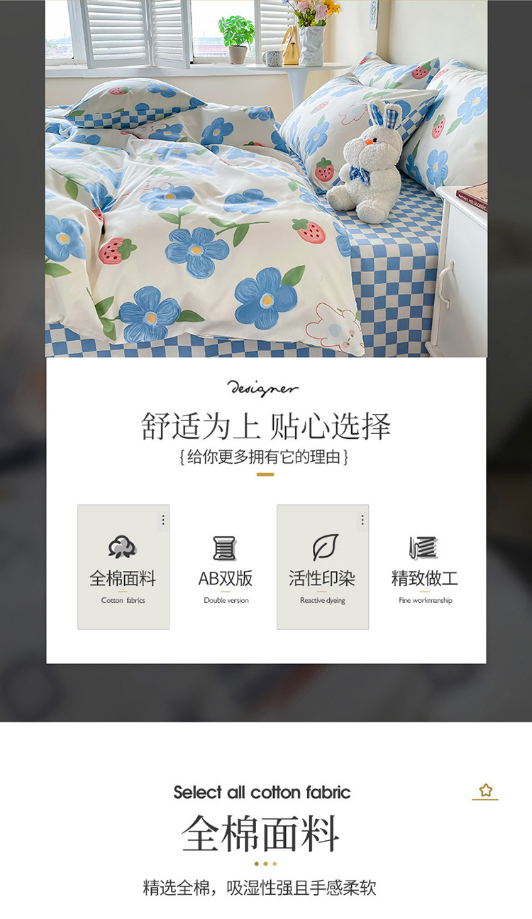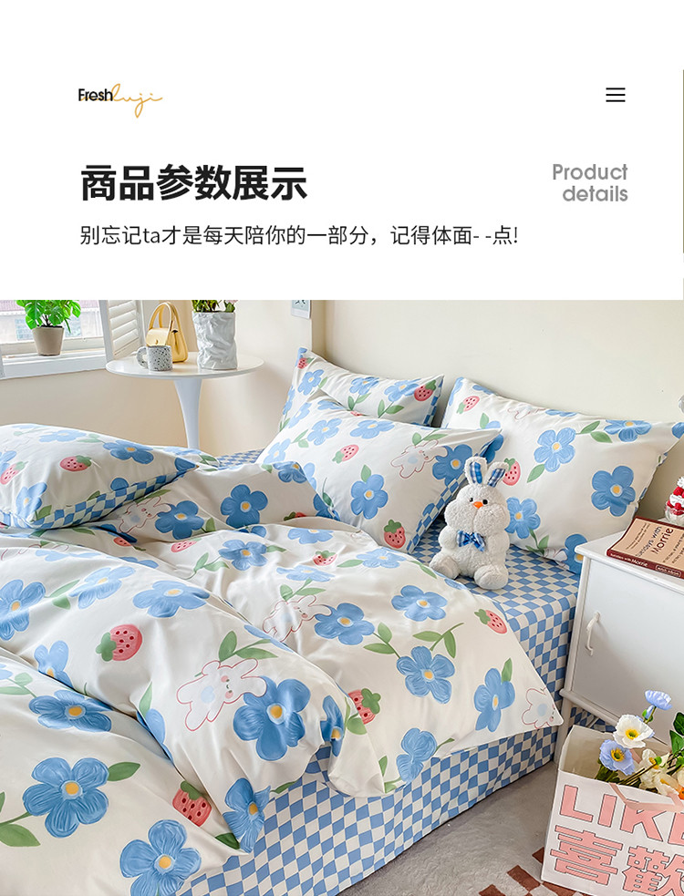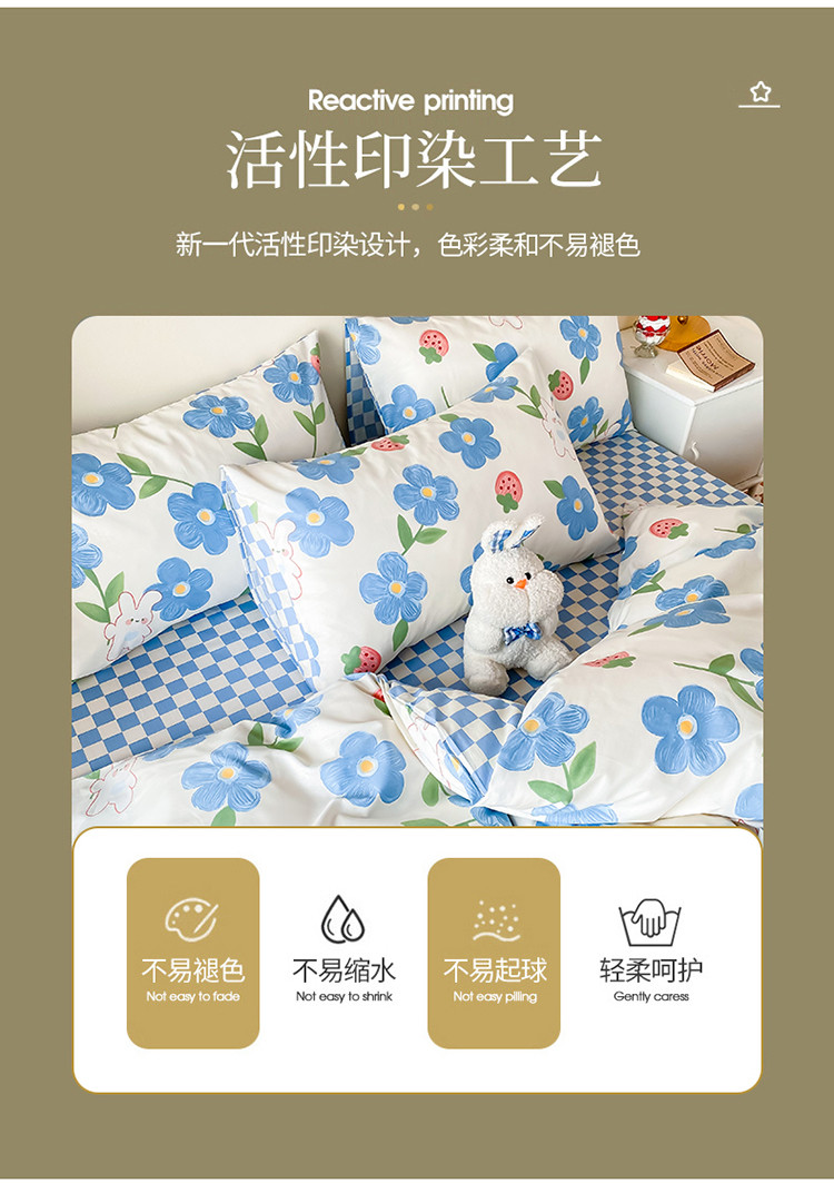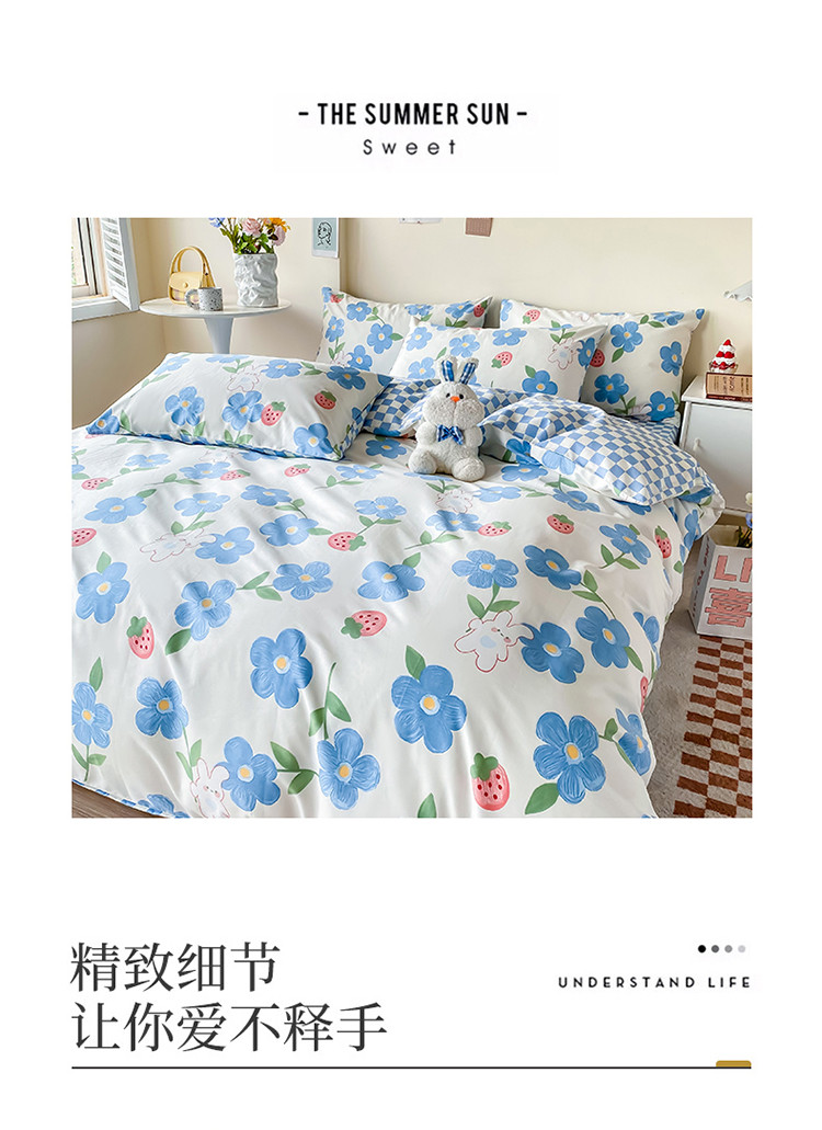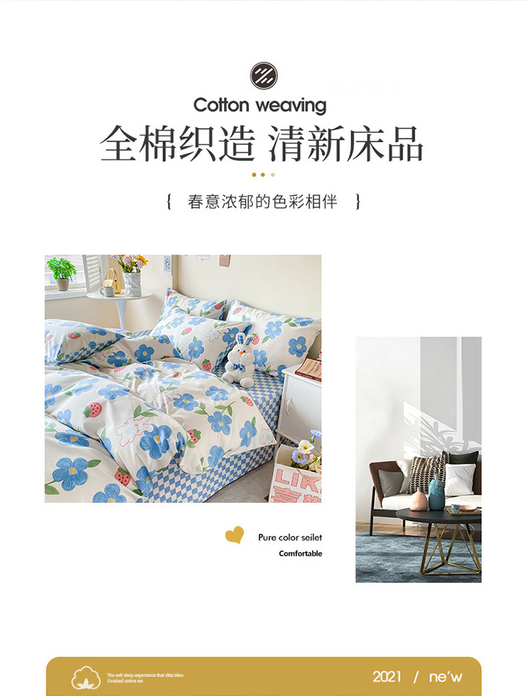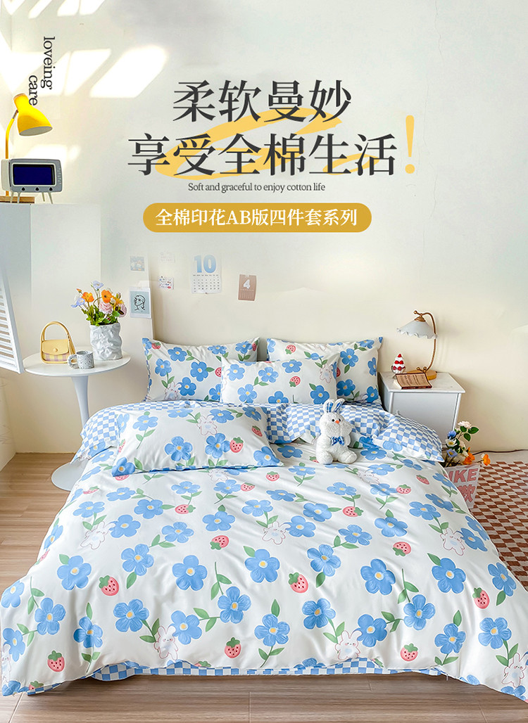 当前位置: 91家纺网 > 商品网购 > 床品套件 > 四件套 > 全棉普通四件套 > 西引力 2022新款全棉印花四件套 蓝色心情