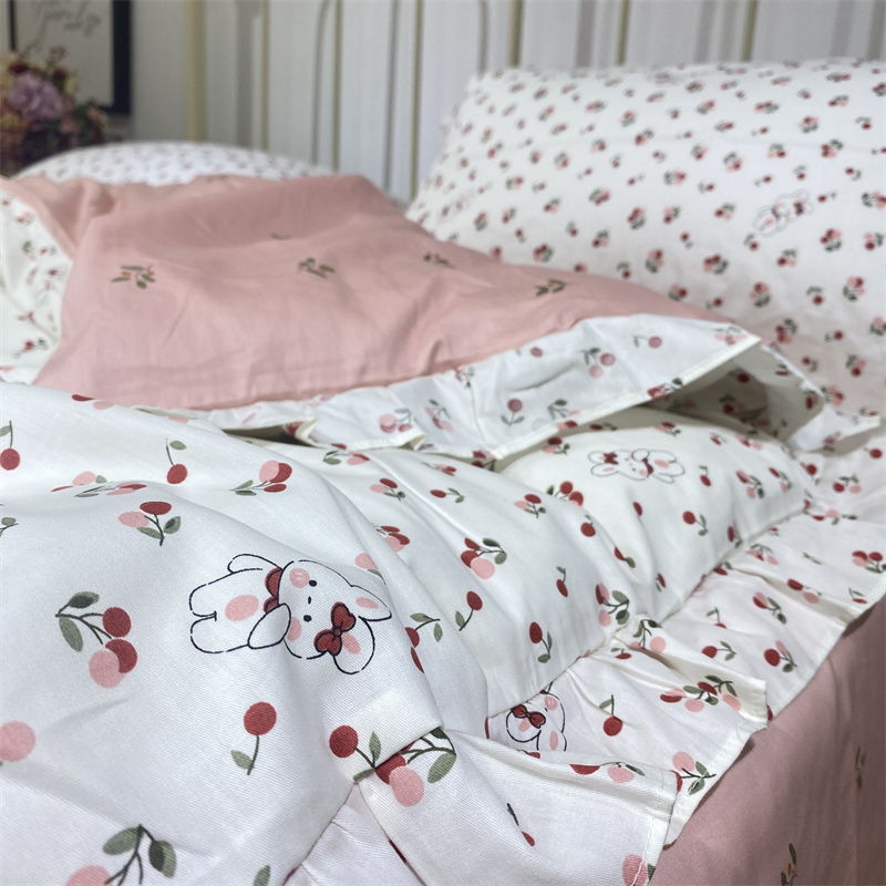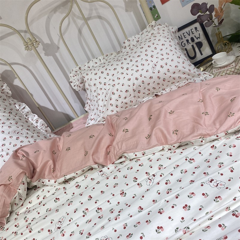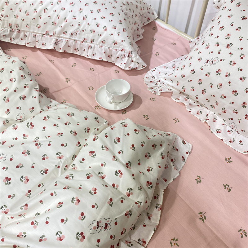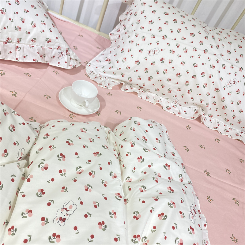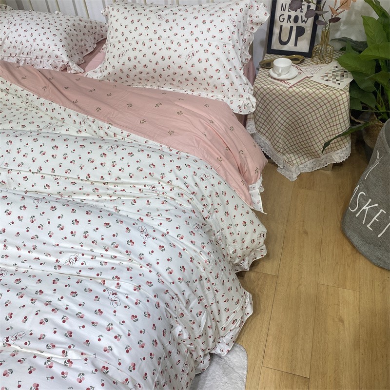 棉生活 2022新款韩系花边碎花四件套 碰碰兔