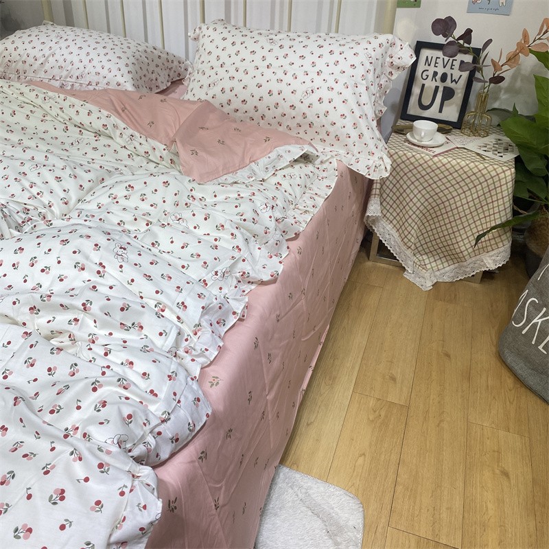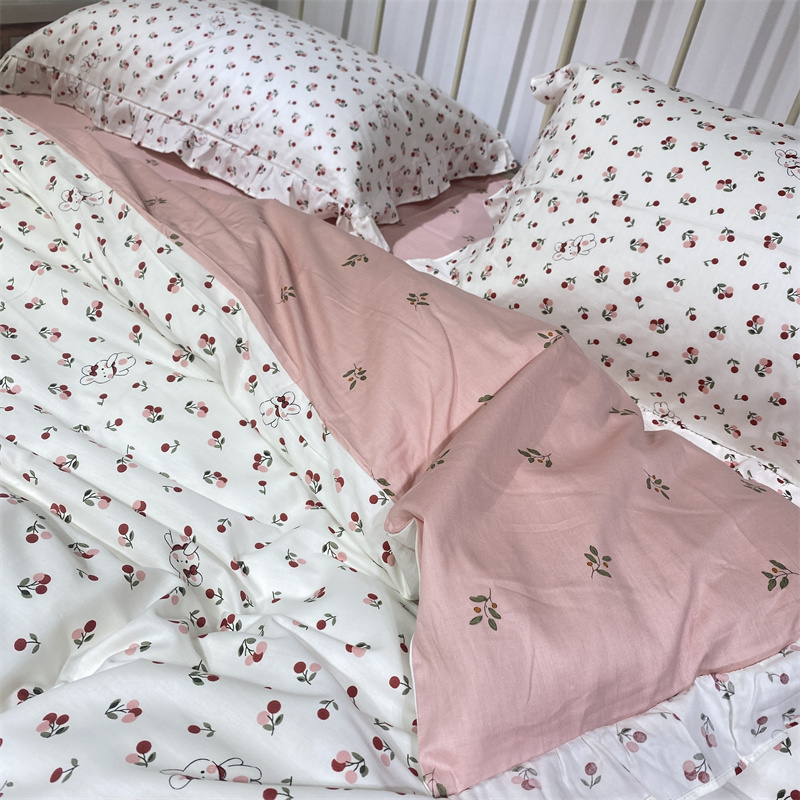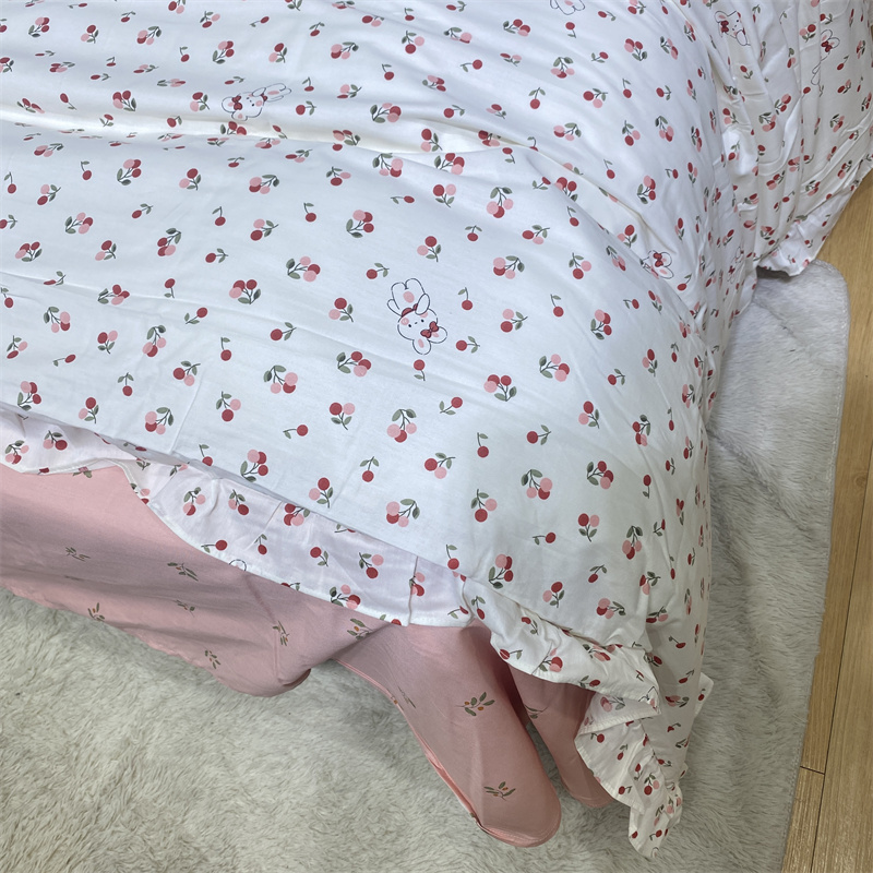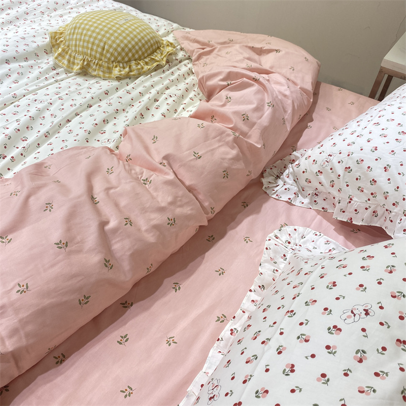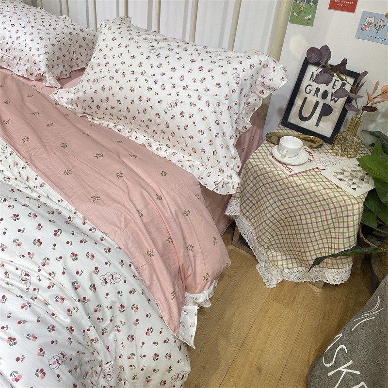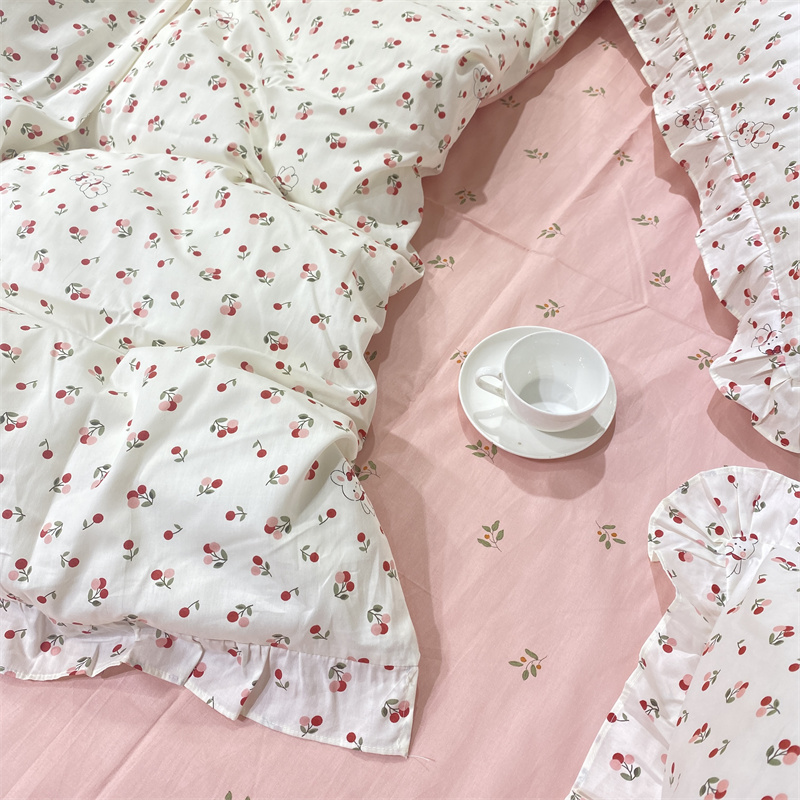棉生活 2022新款韩系花边碎花四件套 碰碰兔