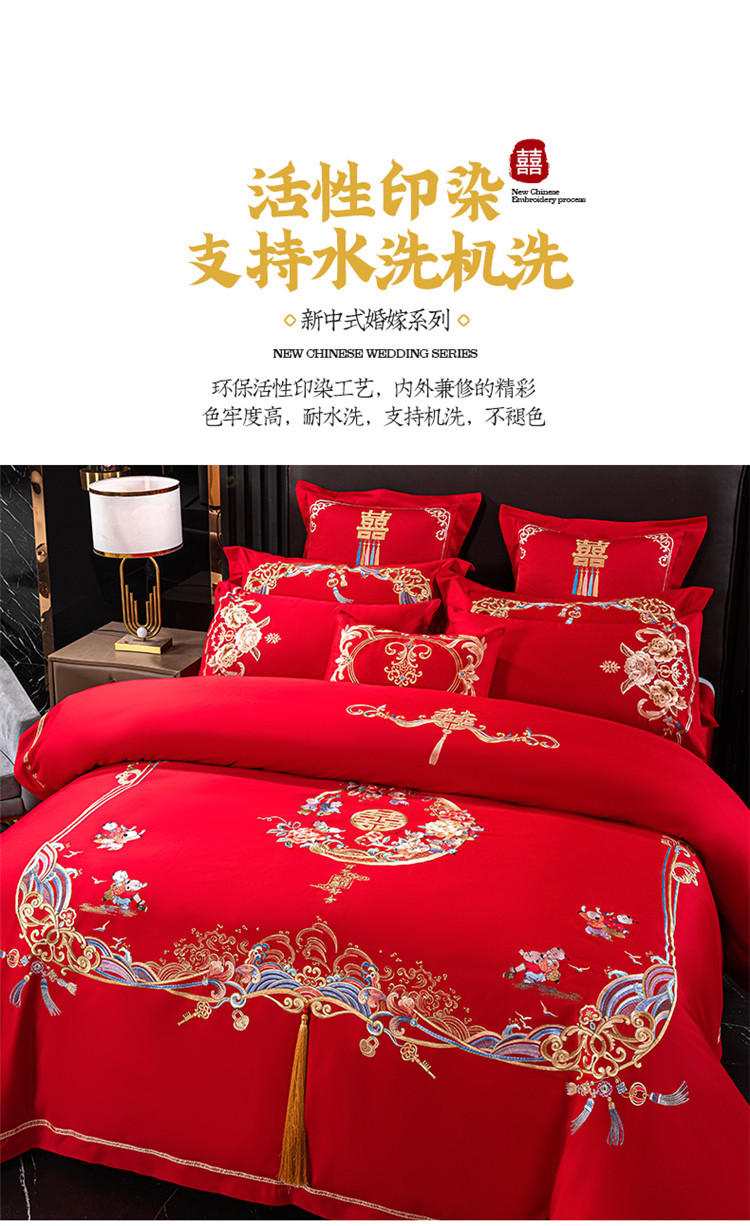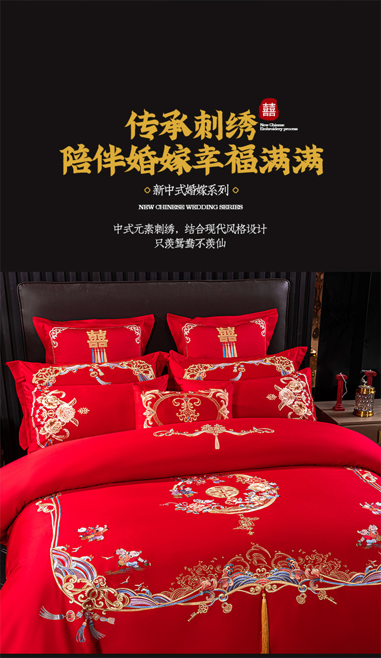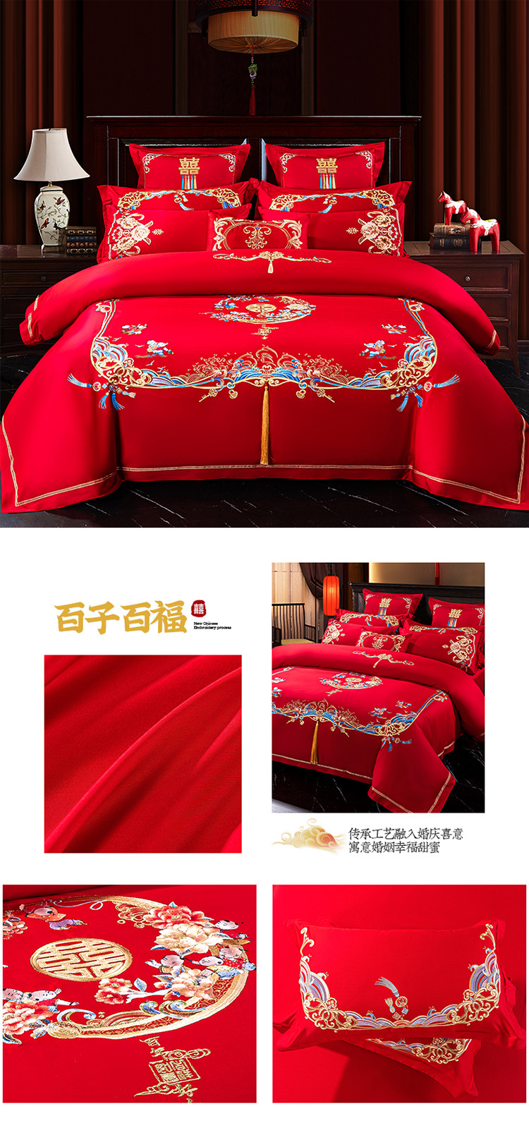 (总)千禧家纺 2024新款双面长绒棉绣花婚庆多件套,百子兴旺,鸿运双喜,花开富贵,江山美人,龙凤团圆,玫瑰恋人,皇家龙凤