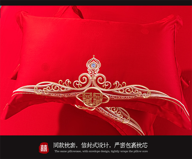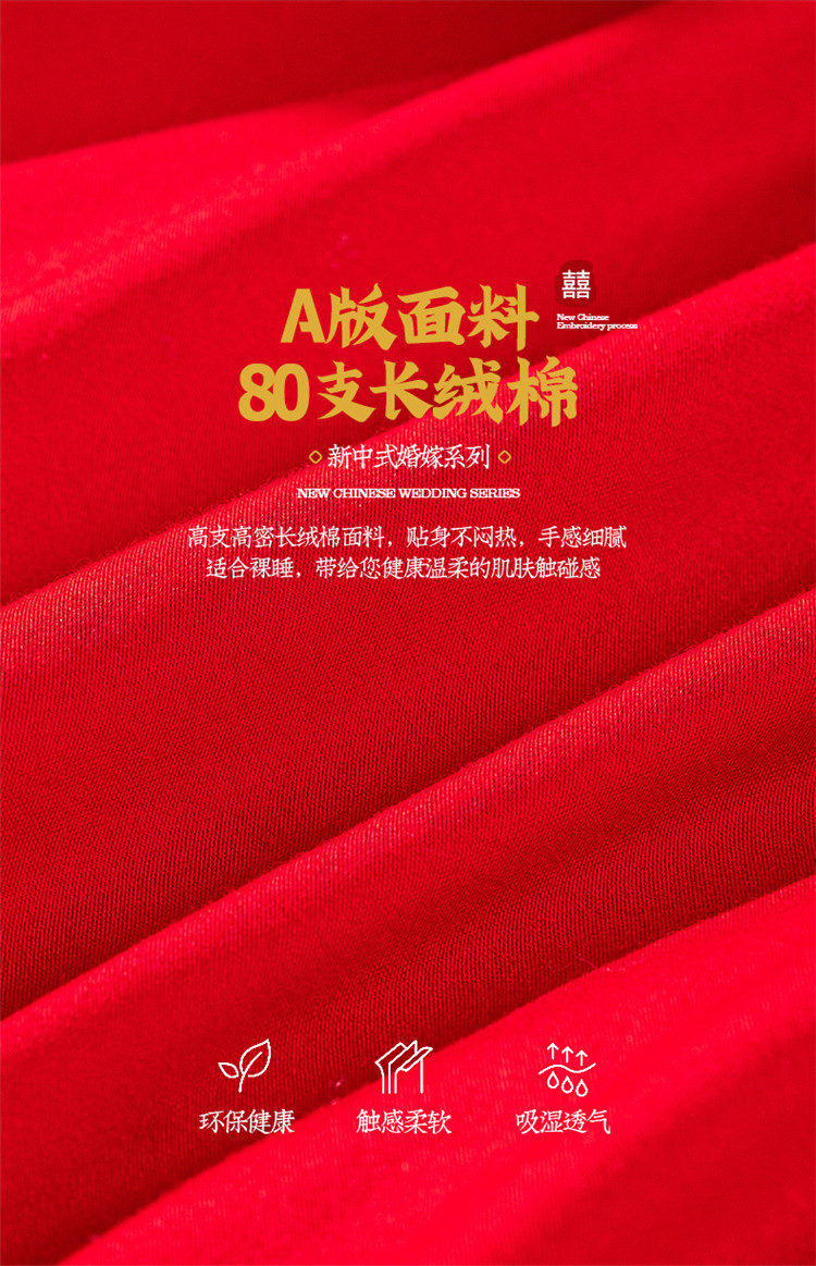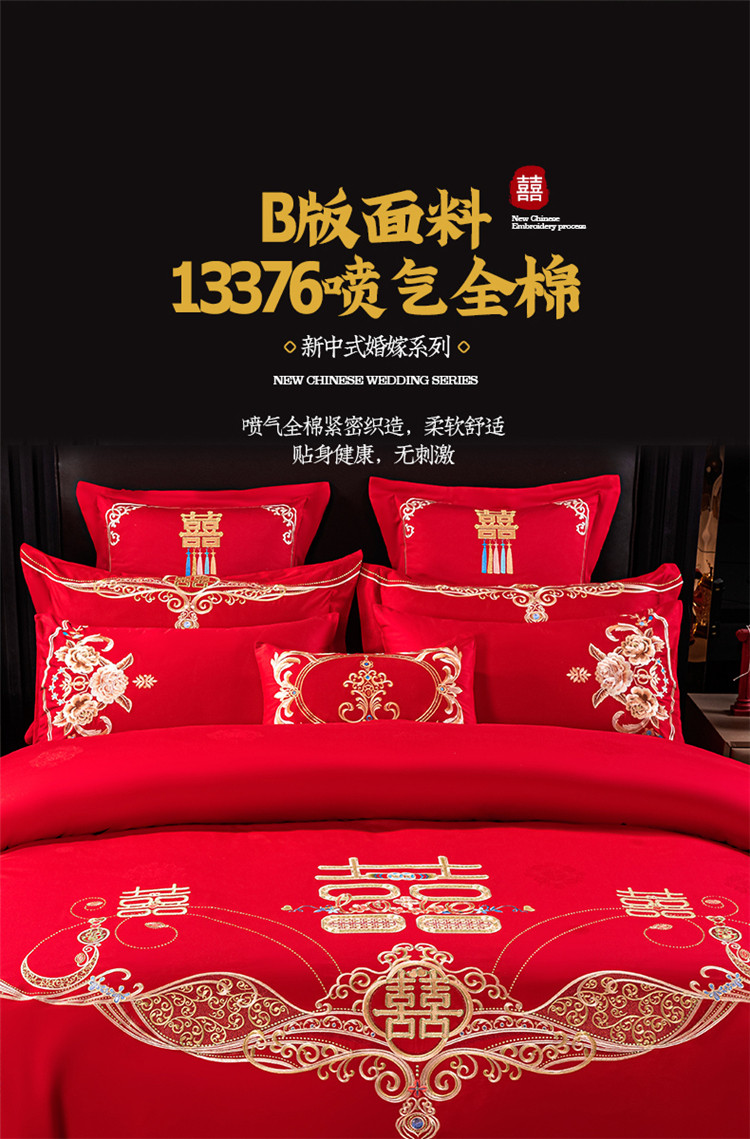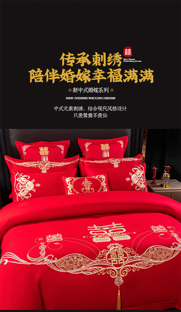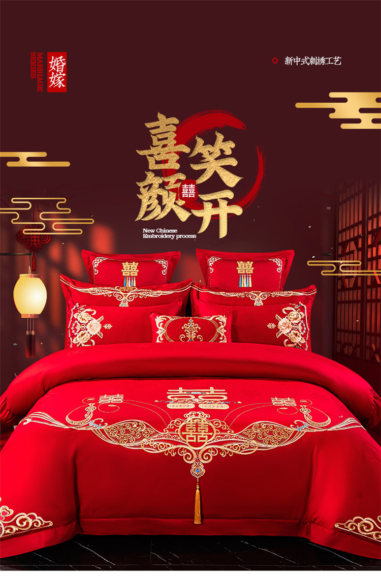 当前位置: 91家纺网 > 商品网购 > 床品套件 > 四件套 > 长绒棉四件套 > 千禧 2022新款婚庆绣花套件 喜笑颜开