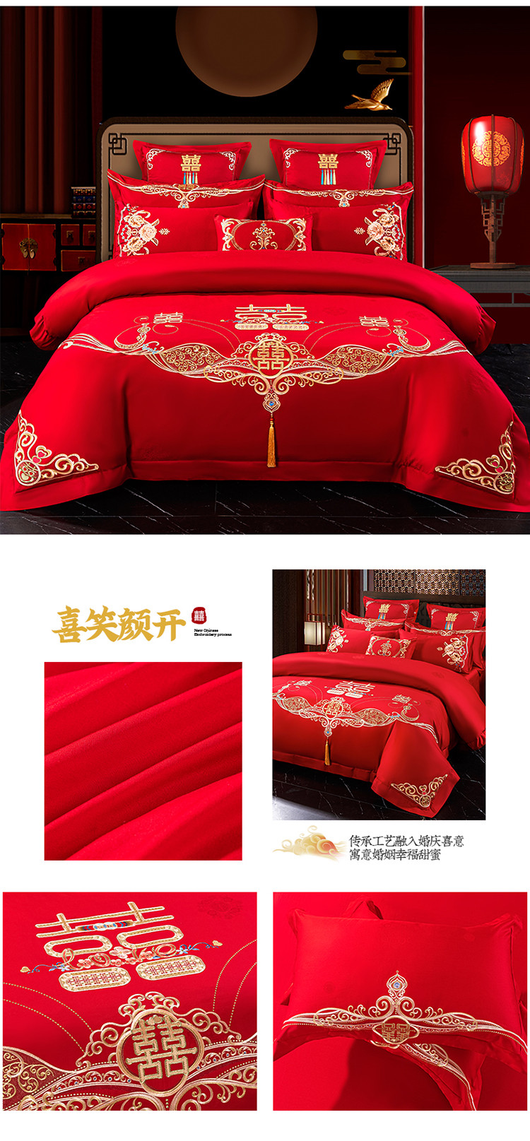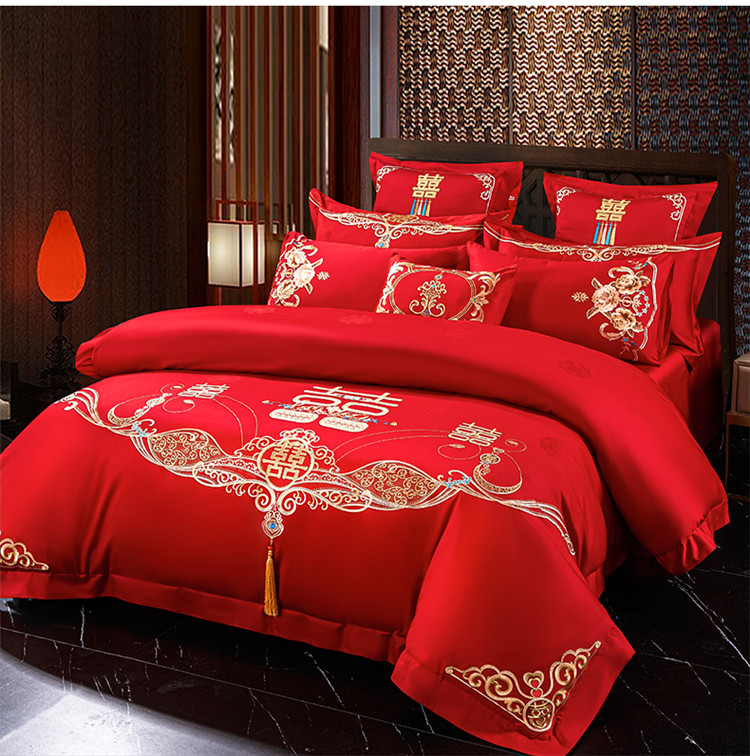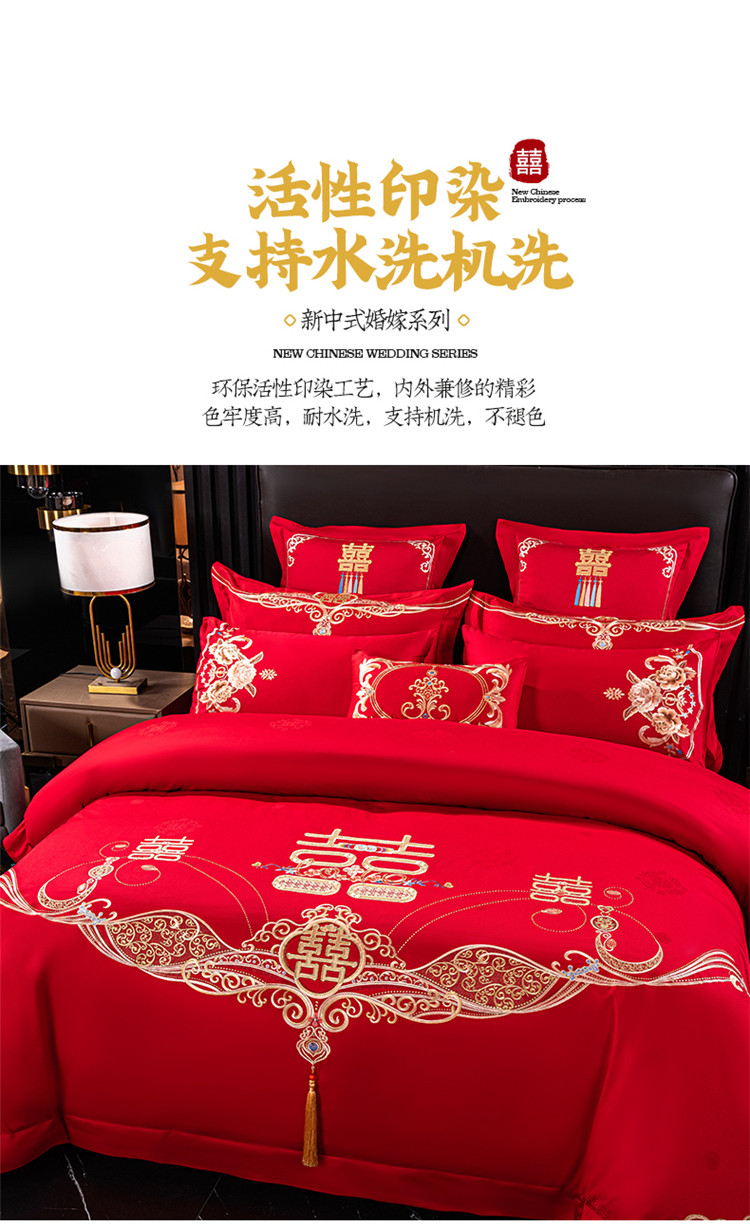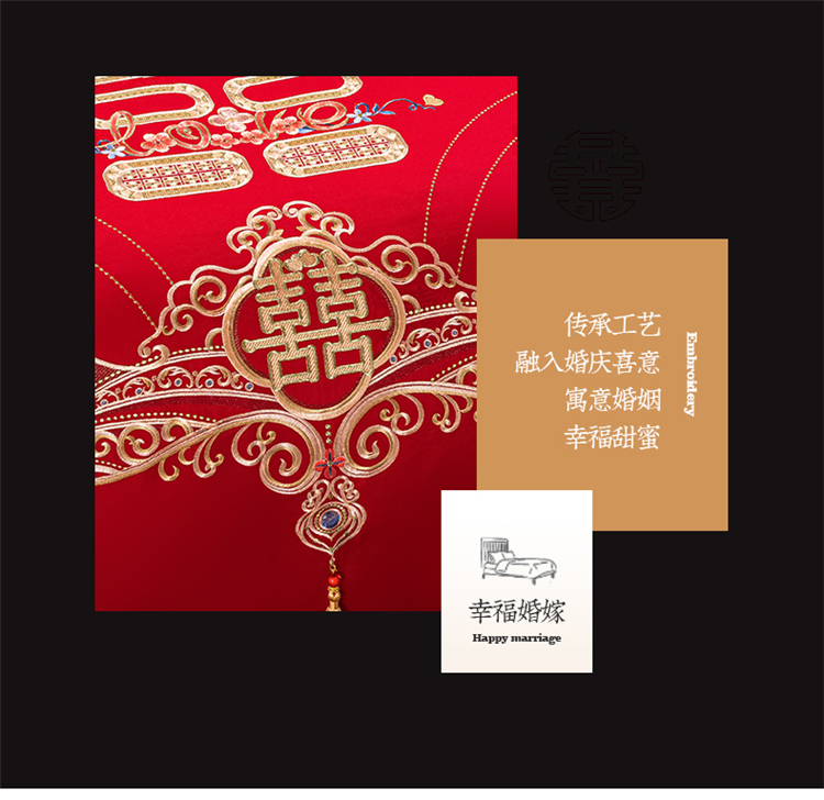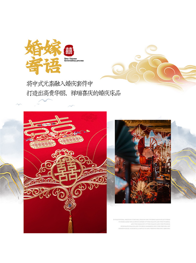 当前位置: 91家纺网 > 商品网购 > 床品套件 > 四件套 > 长绒棉四件套 > 千禧 2022新款婚庆绣花套件 喜笑颜开