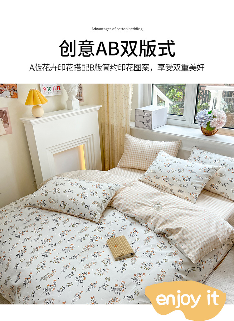(总)优彩 2025新款全棉双层纱四件套,采花兔,彩蘑菇,初暖,粉小花,花栖,恋花小径,萝蔓,落山秋,南瓜派,清然,瑞莎,小熊派,紫葡萄,花栖-咖