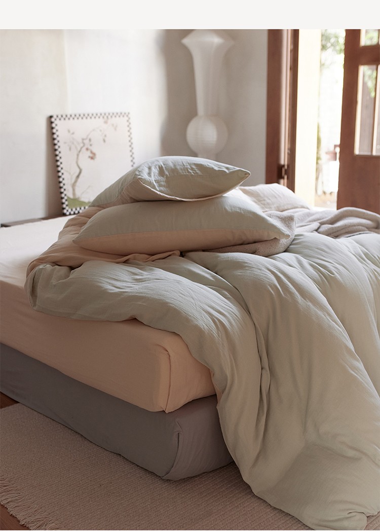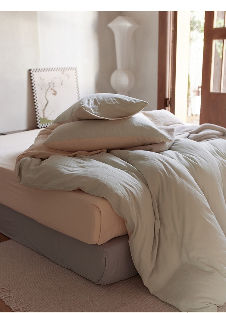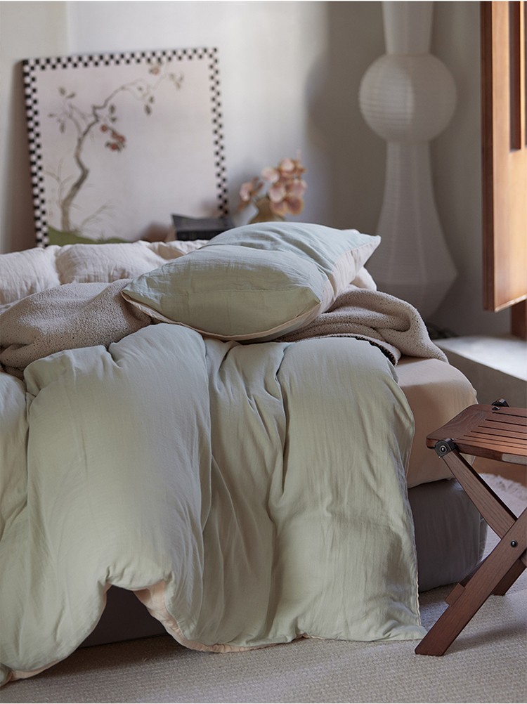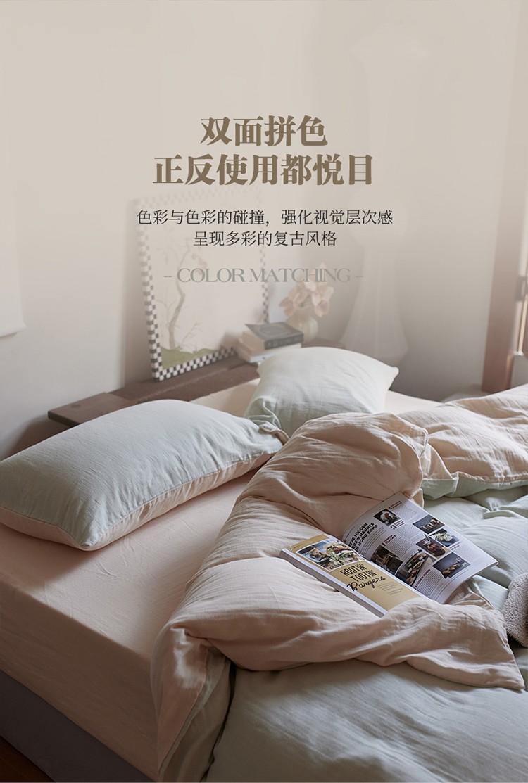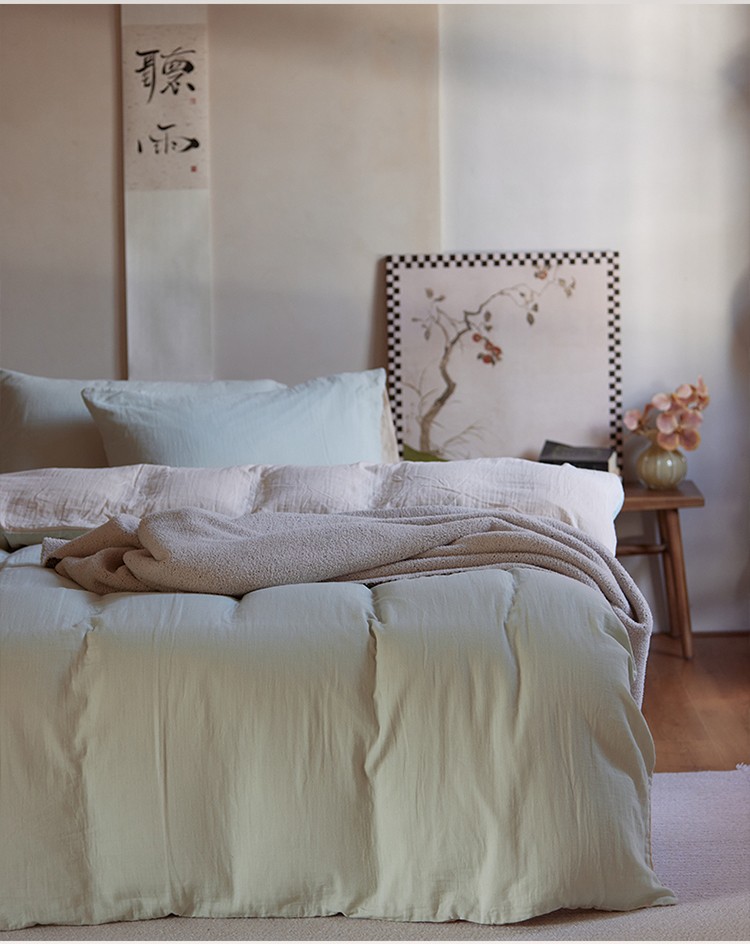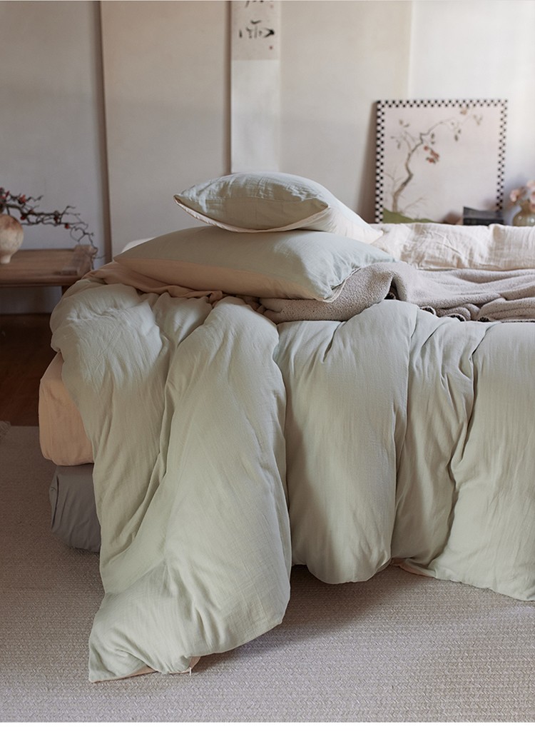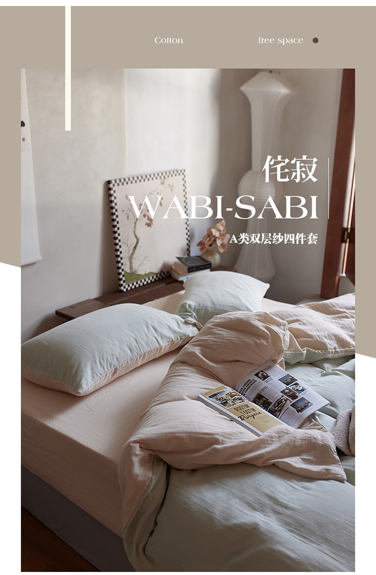 当前位置: 91家纺网 > 商品网购 > 床品套件 > 四件套 > 全棉普通四件套 > 安莱生活 2022新款全棉双层纱纯色四件套--侘寂风 青杏