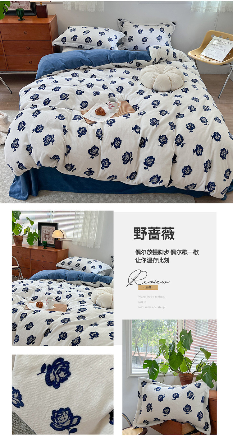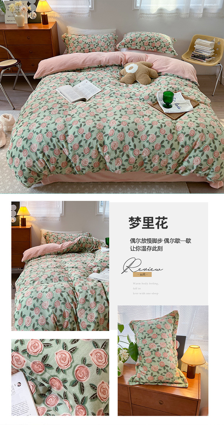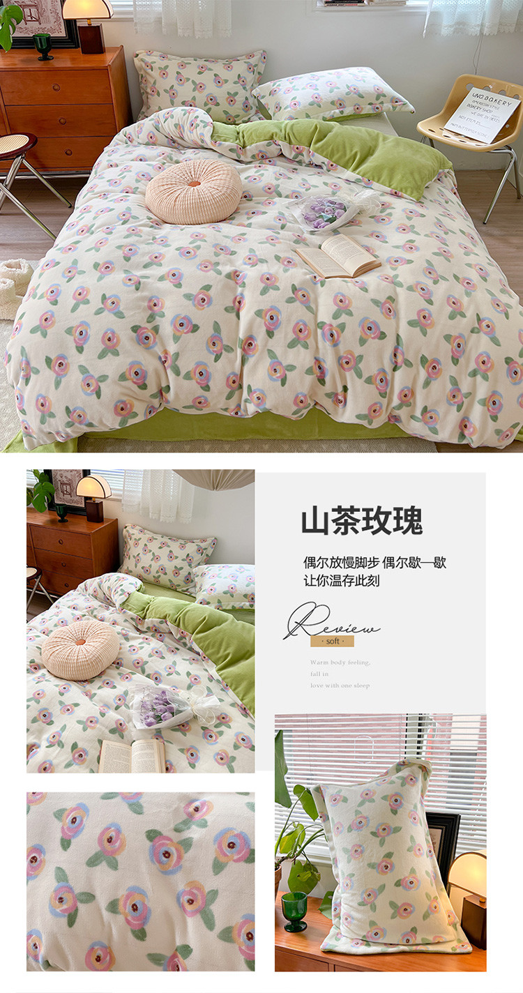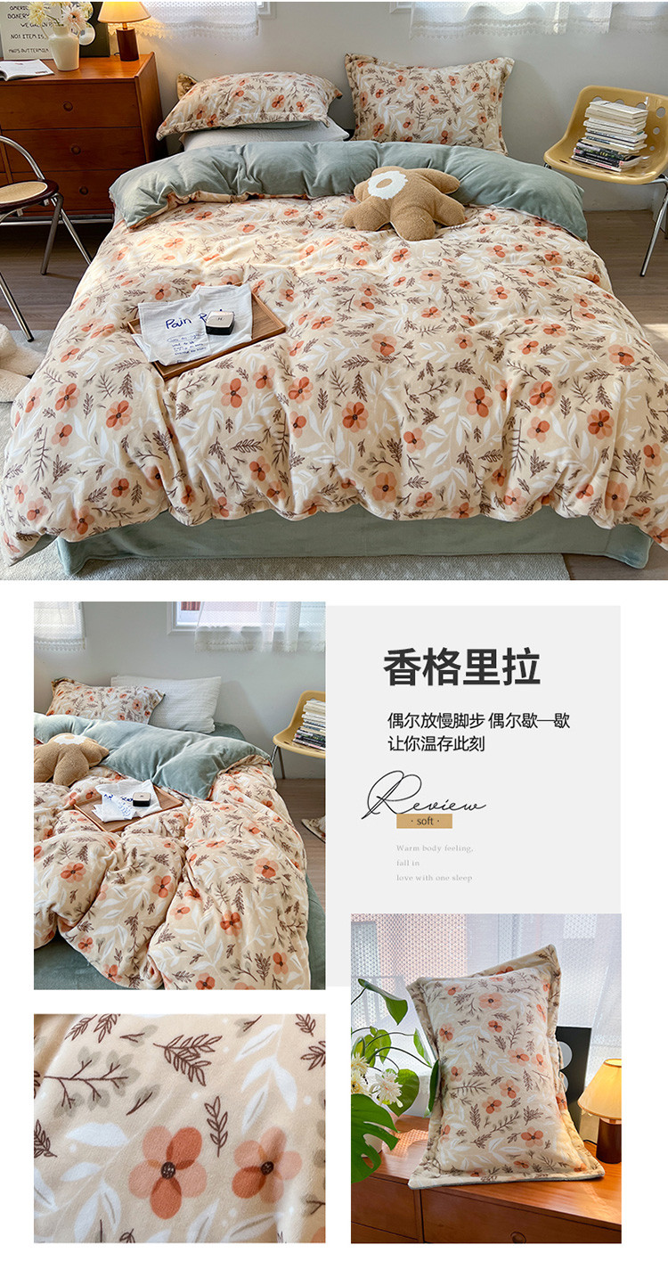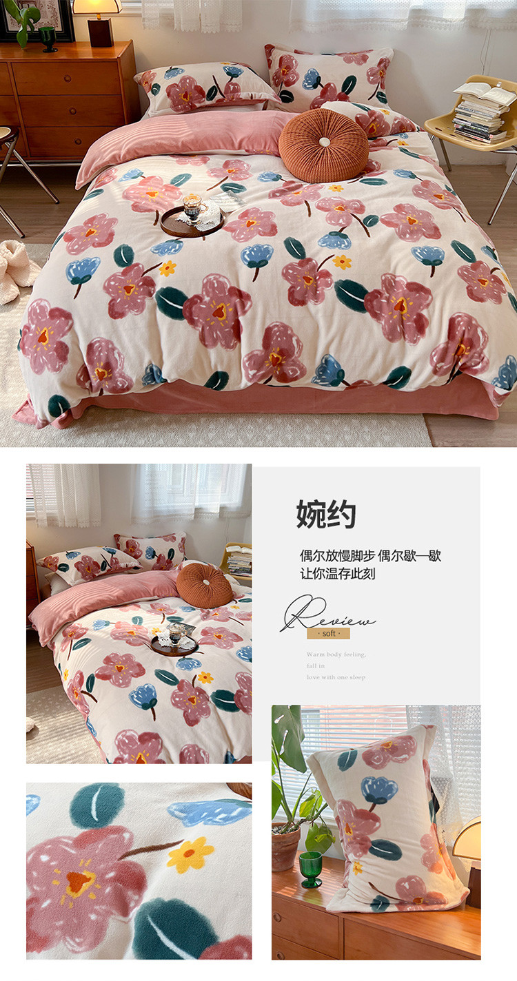 商品名称:(总)柚子 2022新款花卉系列230克韩系高端牛奶绒四件套