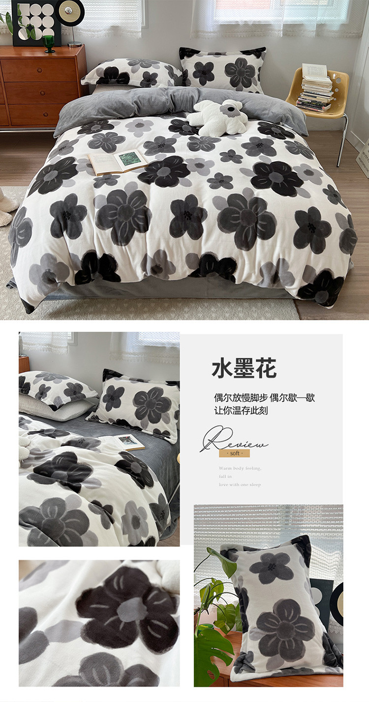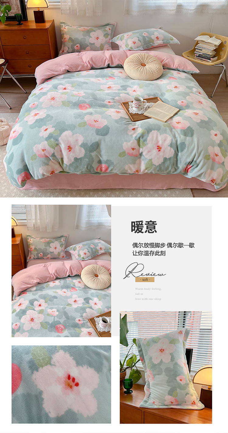 (总)柚子 2022新款花卉系列230克韩系高端牛奶绒四件套