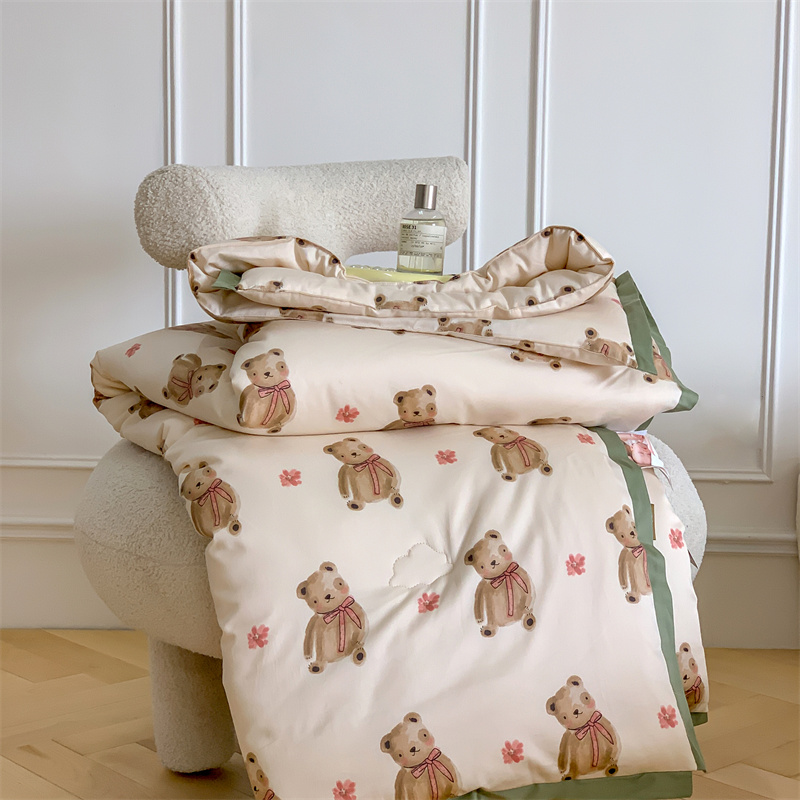 (总)汇庭 2025新款秋冬胖胖樱桃春秋被+樱桃菲菲床盖三件套,组合图下单仅供展示不可下单,粉色,绿色,米色