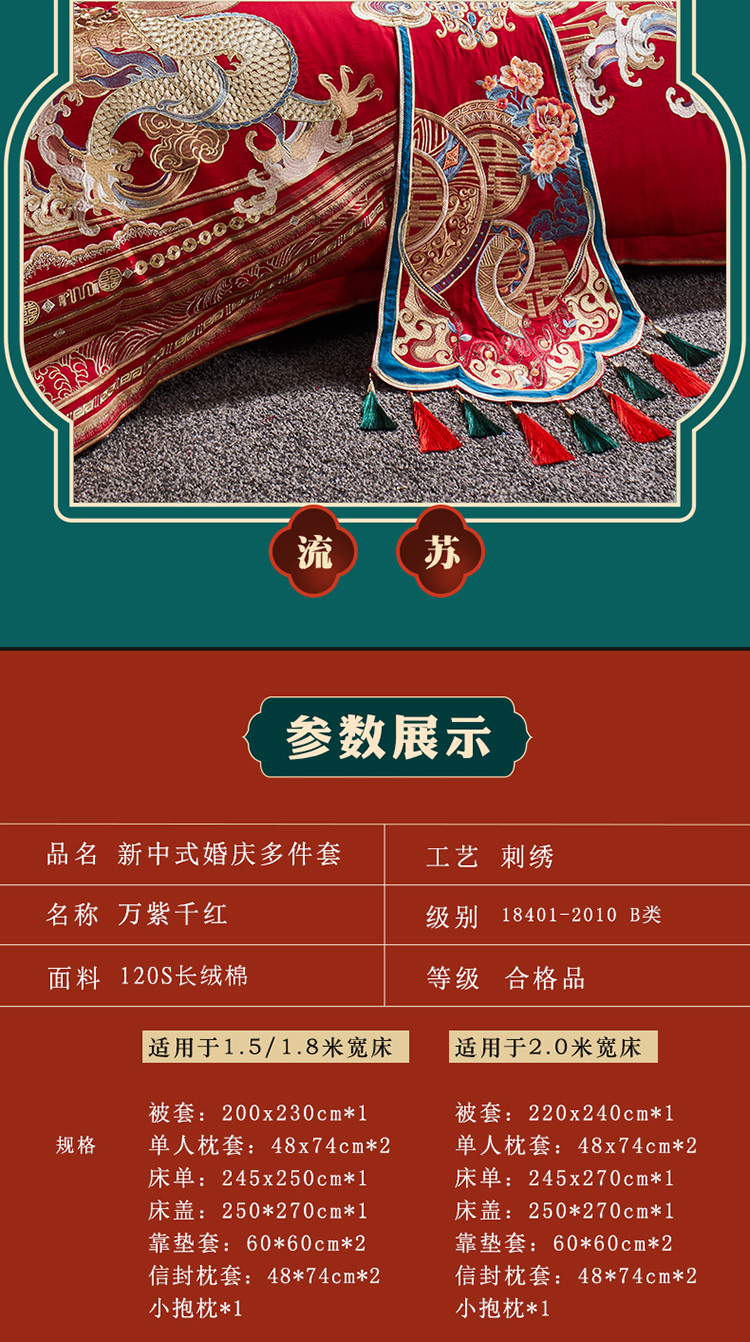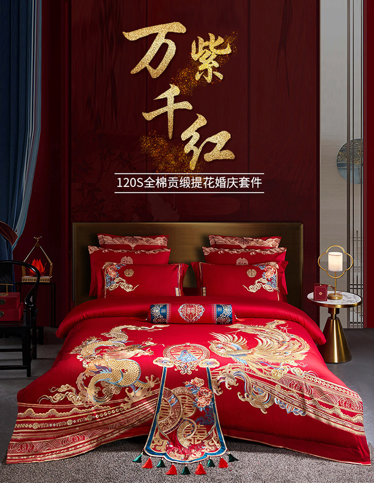 当前位置: 91家纺网 > 商品网购 > 床品套件 > 多件套 > 多件套 > 红番天热卖款全棉提花贡缎澳棉提花中式精美苏绣多件套万紫千红