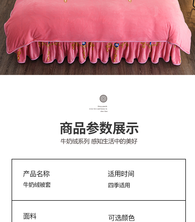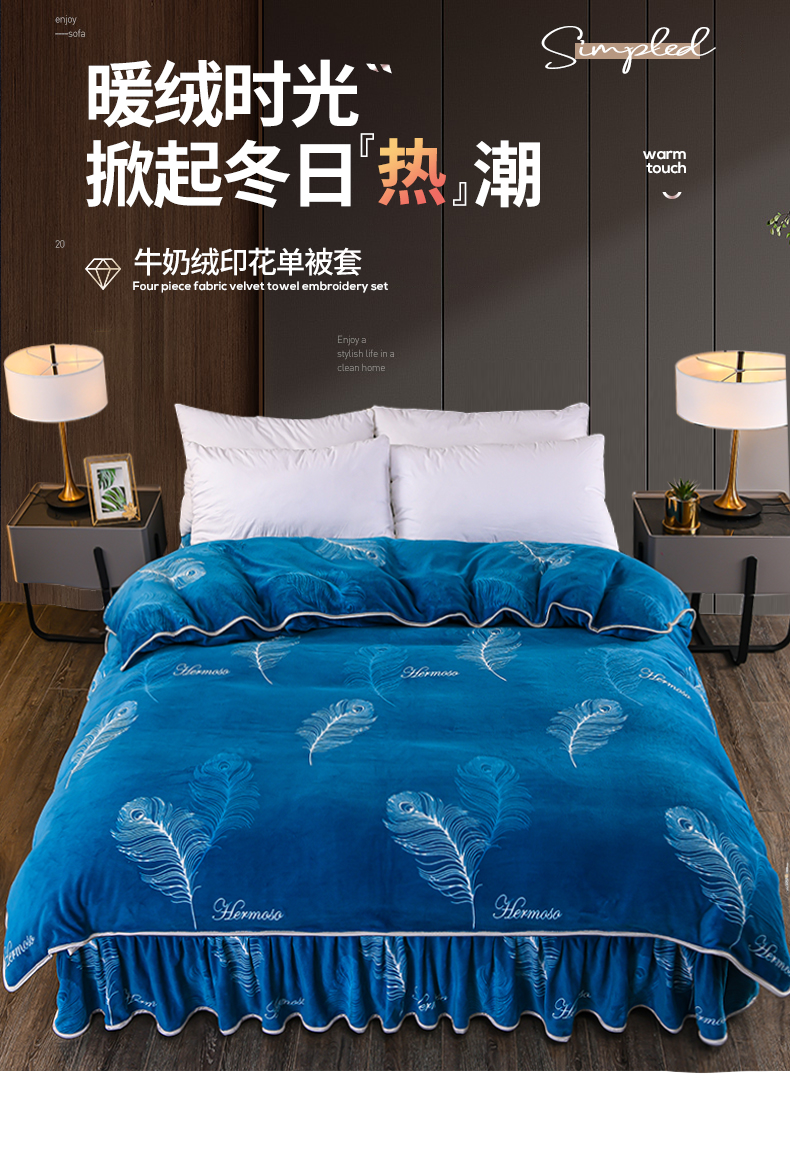 商品名称:(总)梦宴2025新款冬季牛奶绒加厚保暖床裙款法兰绒珊瑚绒四件套床上用品--牛奶绒单被套