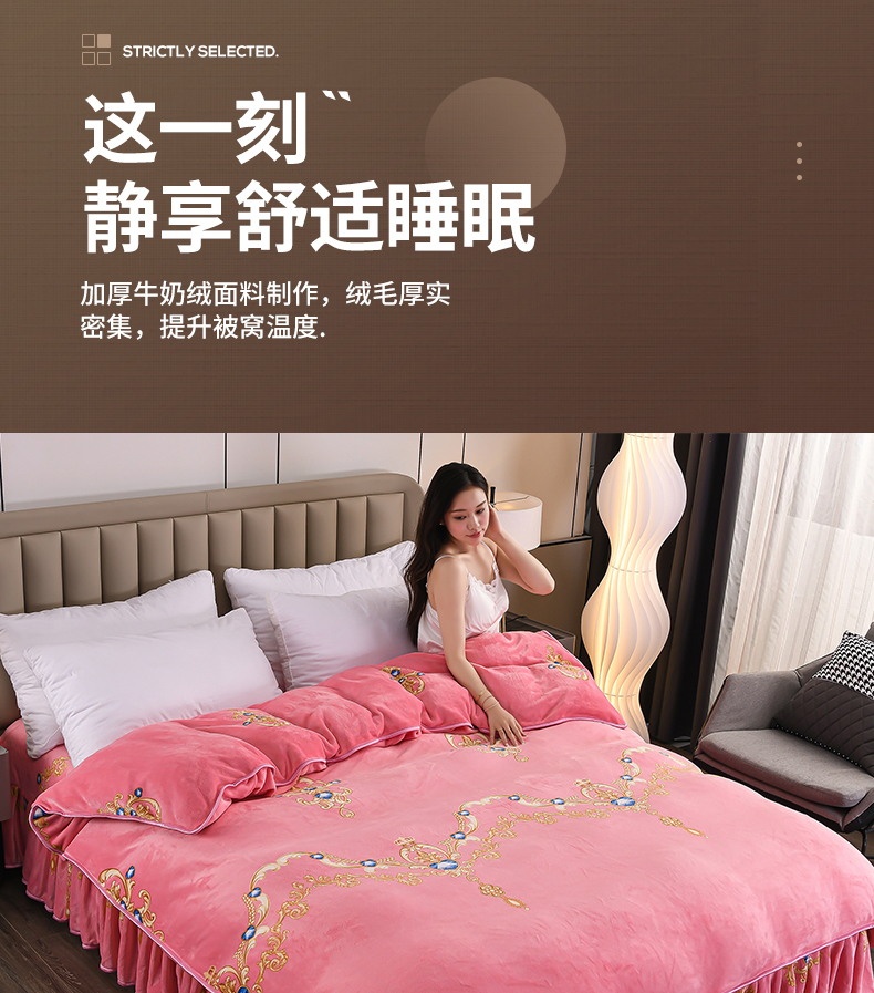(总 )梦宴 2025新款冬季牛奶绒加厚保暖床裙款法兰绒珊瑚绒四件套床上用品,暗香,百花争艳,点亮生活,粉恋,格调,嗨皮兔,红粉佳人,花开盛宴,花香四溢,花样情怀,花语江南,花枝如梦,吉祥如意,极简主义,寂静星空,假日风情,金枝玉叶,锦绣山河,可爱萌兔,蓝大格,乐享生活,美好心情,魅力人生,梦恋,蜜巢,牡丹花开,欧式情怀,怦然心动,蒲公英,千鸟格,轻奢时代,秋意浓浓,三生有杏,森林童话,森林小鹿,圣诞鹿,盛世爱恋,时尚条纹,快乐空间,素色主义,童年回忆,心相随,心心相印,幸福树,熊猫乐园,休闲时光,雅阁,叶语,一路有你,一生相伴,一叶知秋,英伦风尚,羽梦,月光鹿