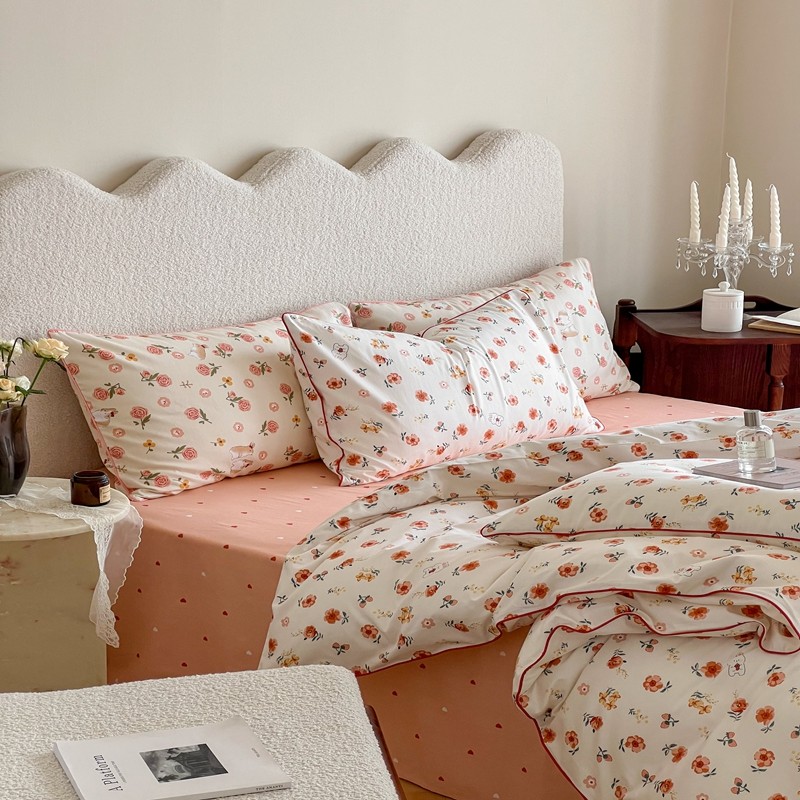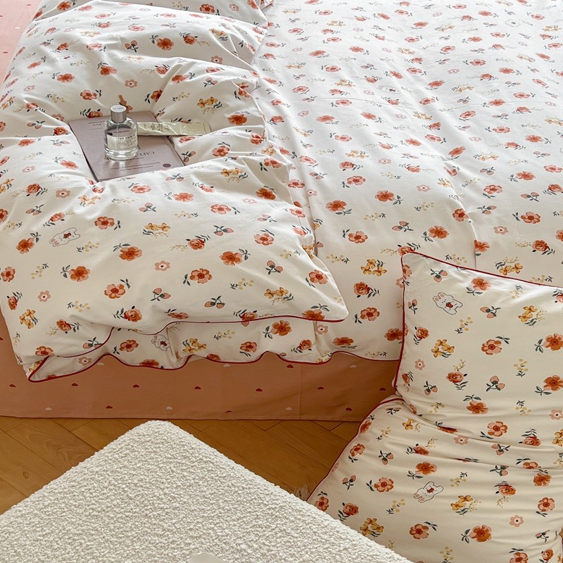 商品名称:顾里家纺 2023新款法式复古嵌绳全棉四件套 花间兔