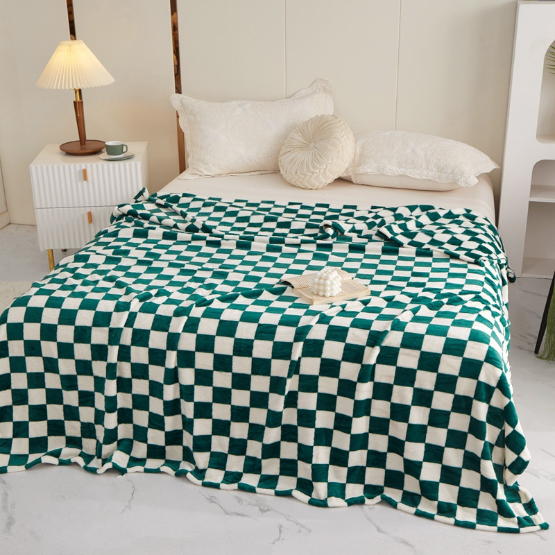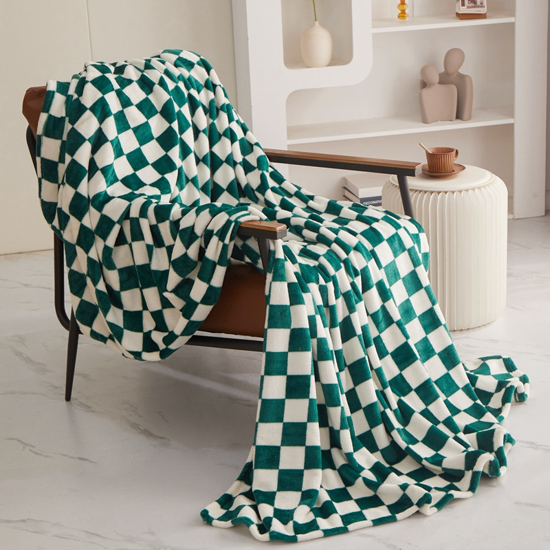 商品名称:新丽佳2022新款法兰绒棋盘格毛毯 绿白格
