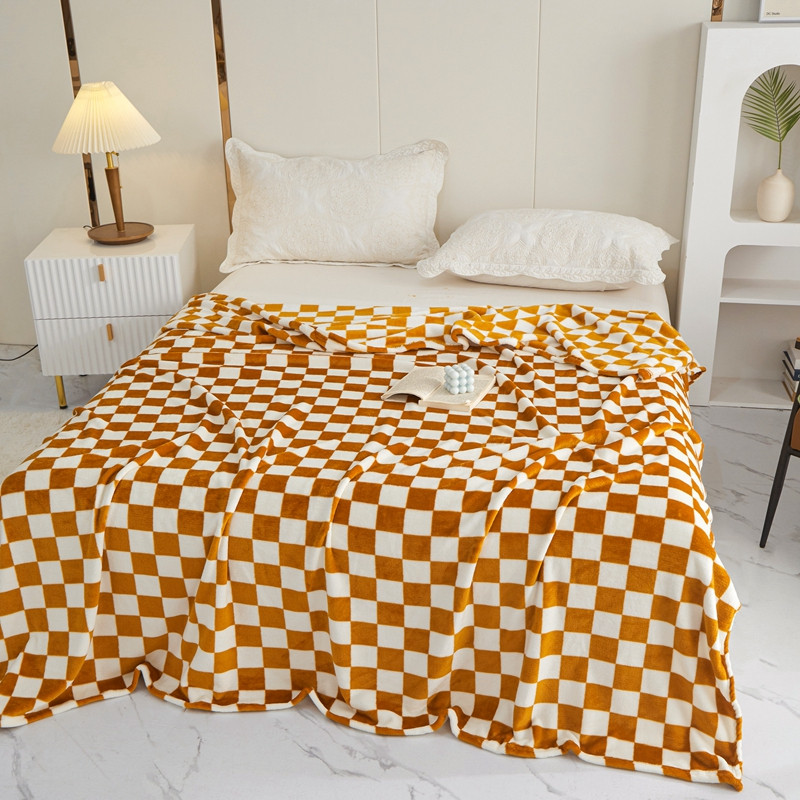 新丽佳2022新款法兰绒棋盘格毛毯 金黄格