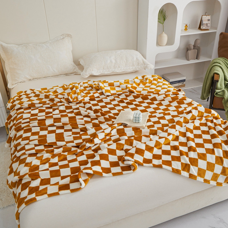 商品名称:新丽佳2022新款法兰绒棋盘格毛毯 金黄格