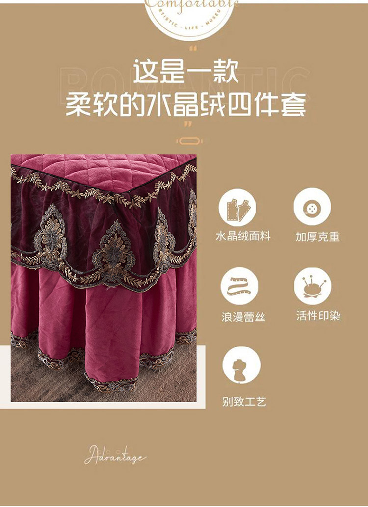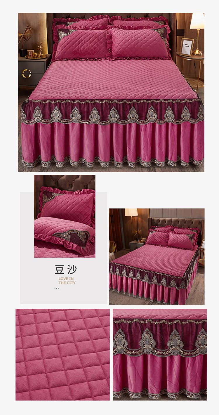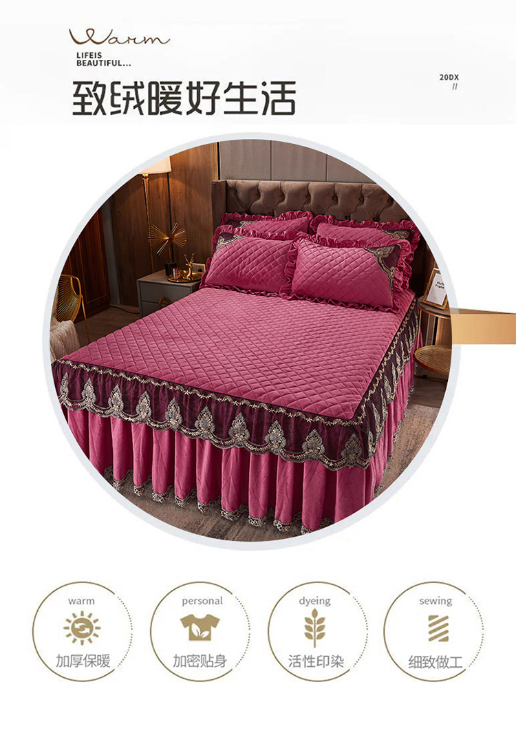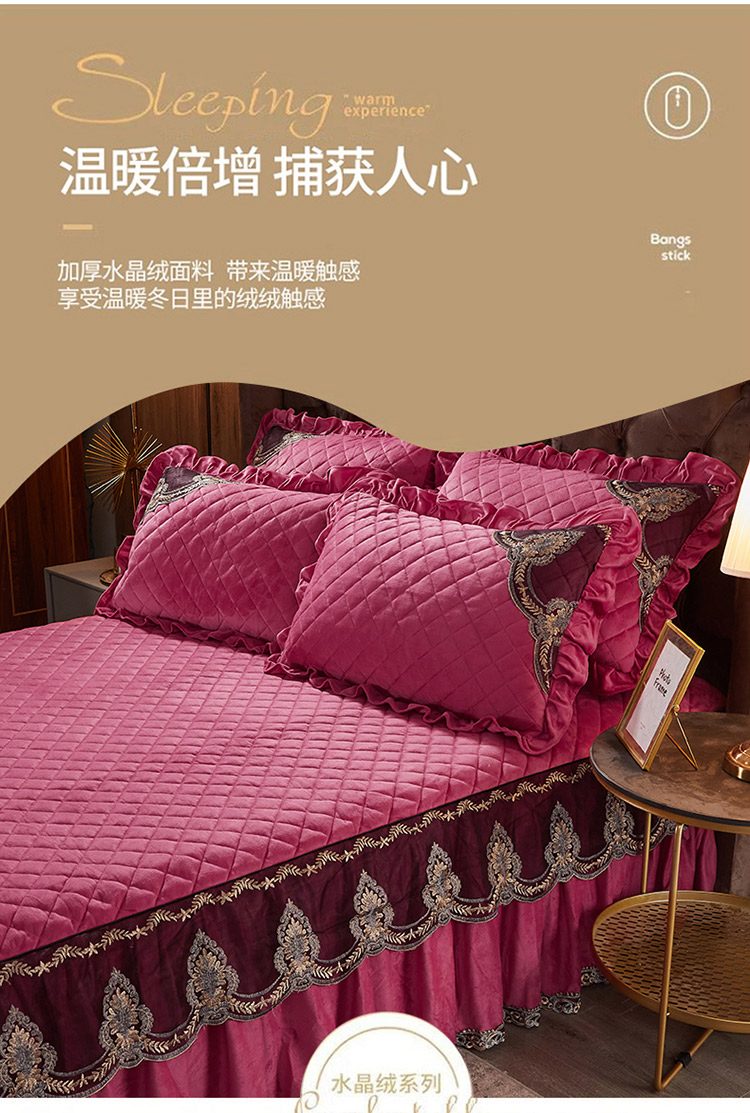 商品名称:家之硕 2022新款水晶绒夹棉床裙三件套系列-幸运花 豆沙