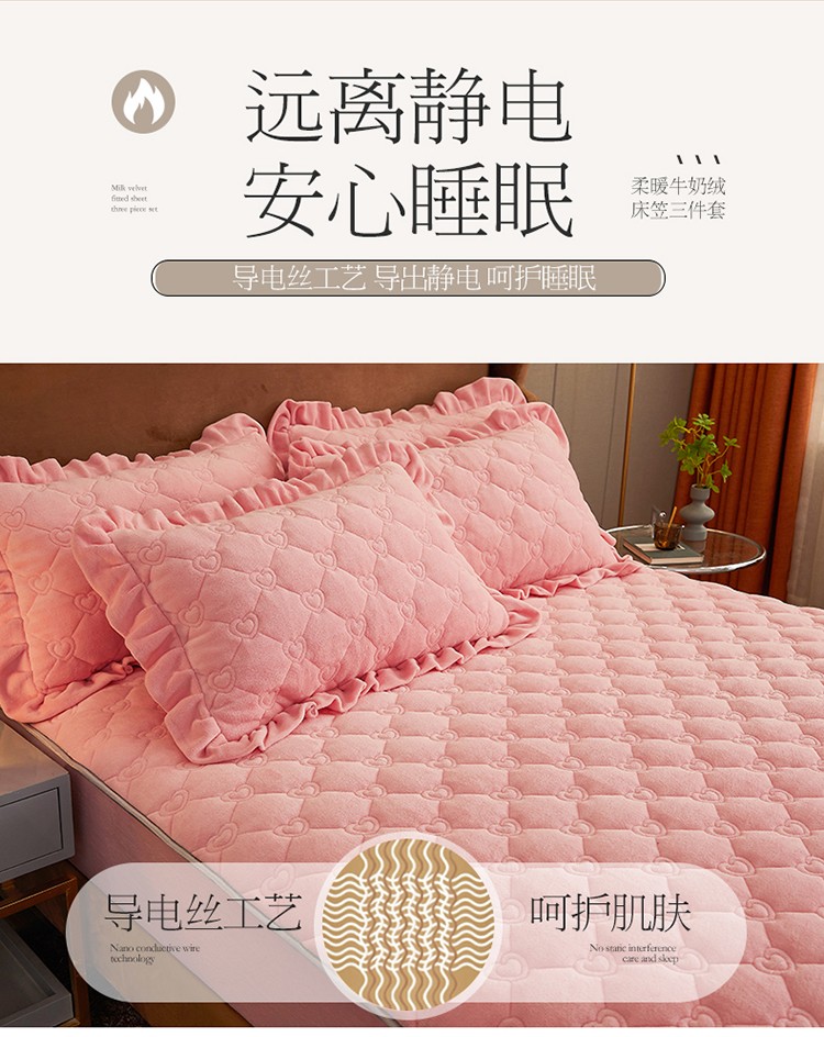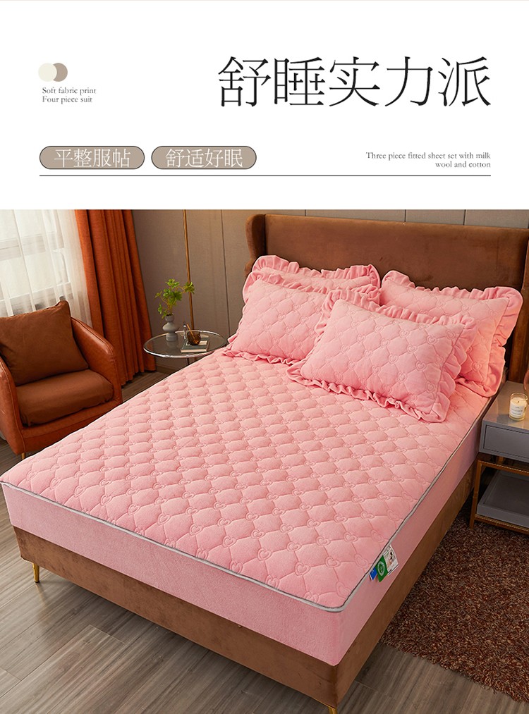商品名称:宜凡2022新款牛奶绒纯色夹棉床笠 柔玉