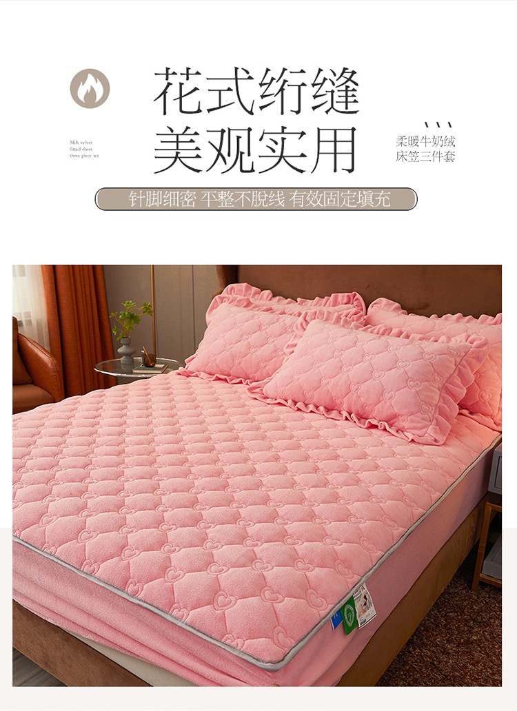 宜凡2022新款牛奶绒纯色夹棉床笠 柔玉