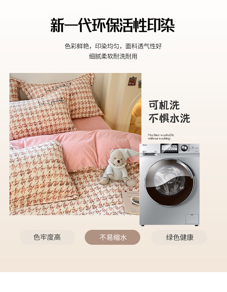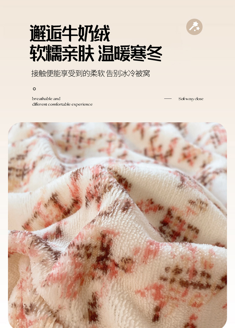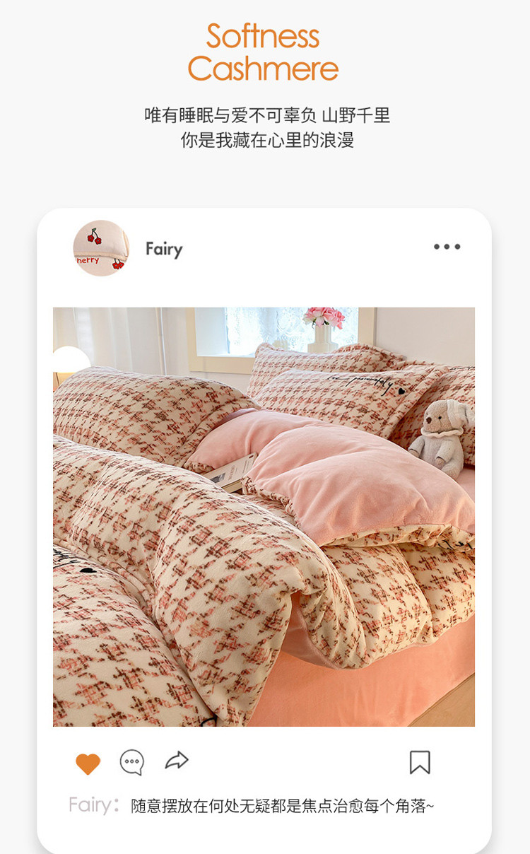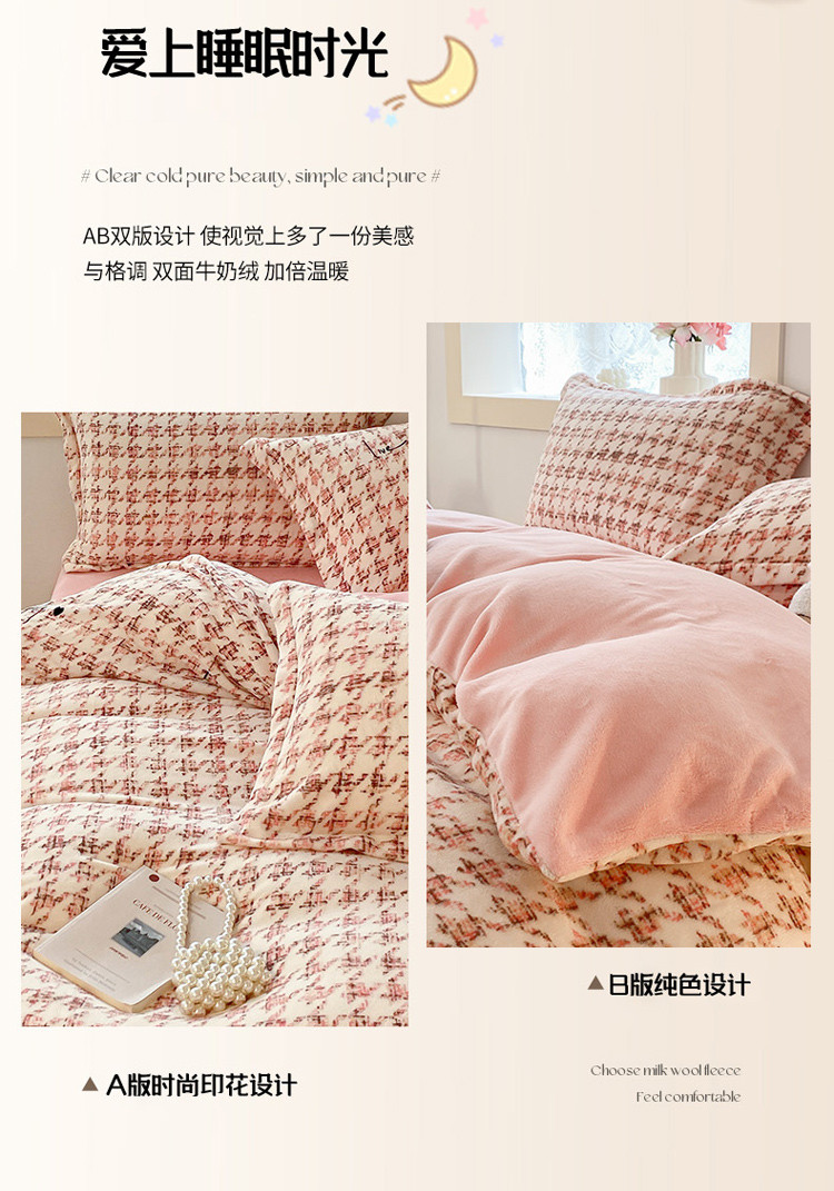 沐慕 2022新款牛奶绒四件套 千鸟格粉