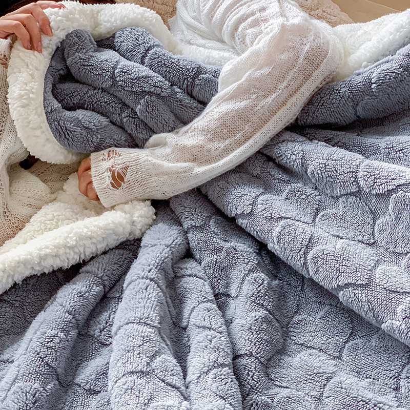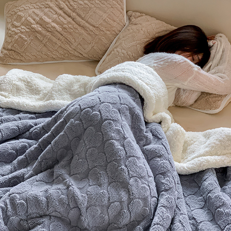 昔可家纺 2022新款ins风纯色保暖塔塔绒多功能毛毯 爱心雾霾蓝