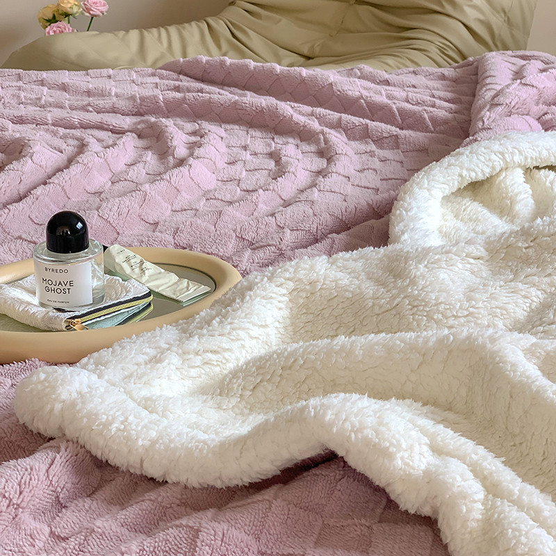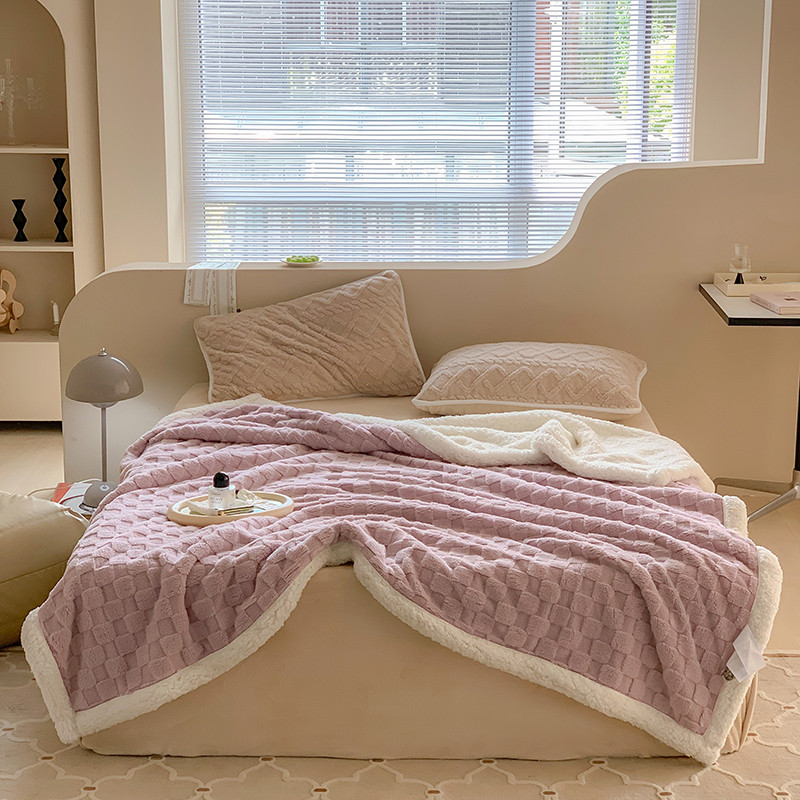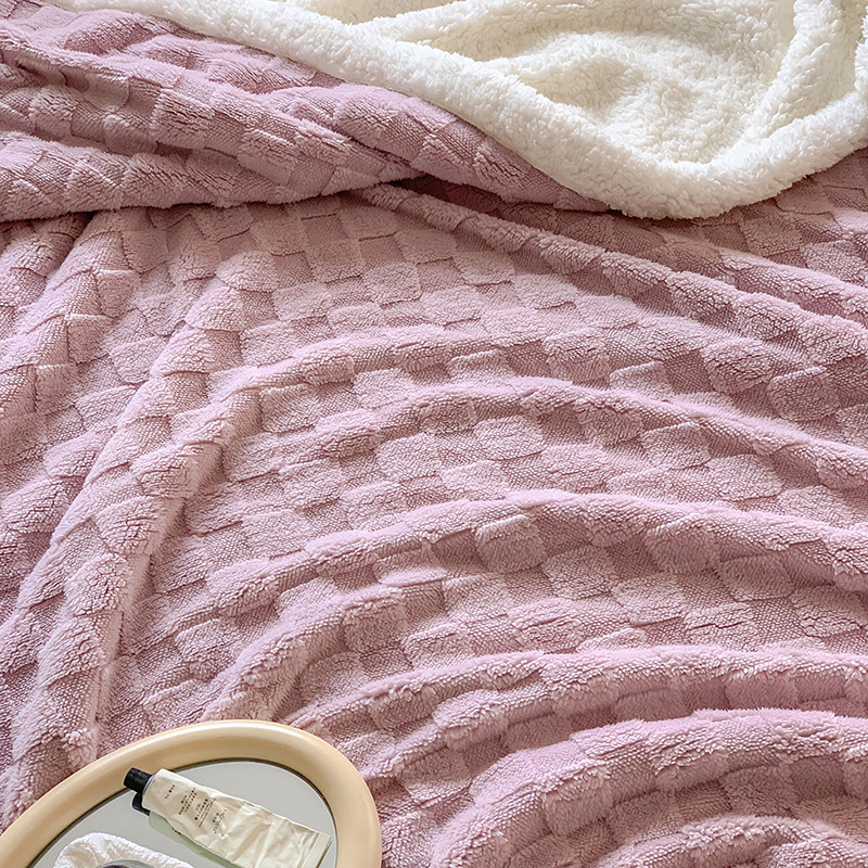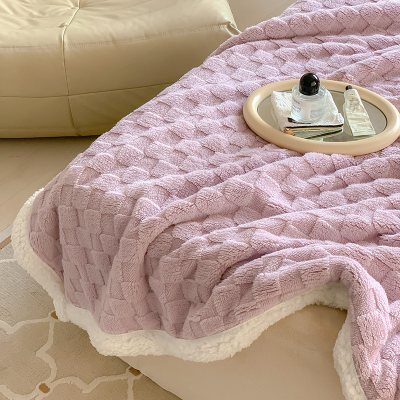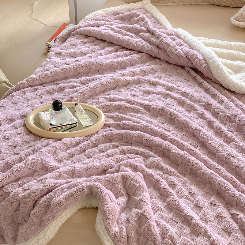 昔可家纺 2022新款ins风纯色保暖塔塔绒多功能毛毯 棋盘格紫