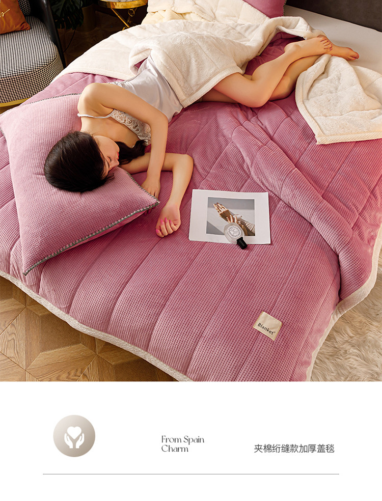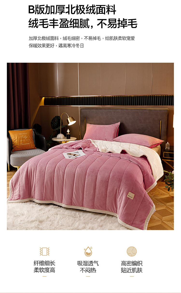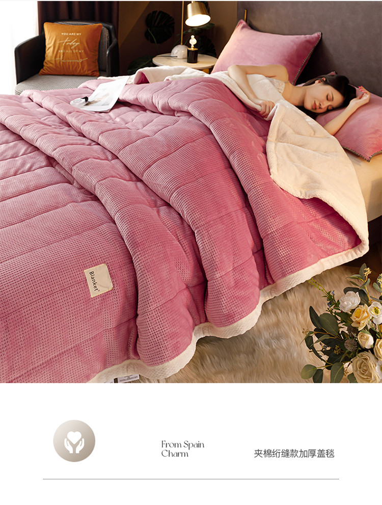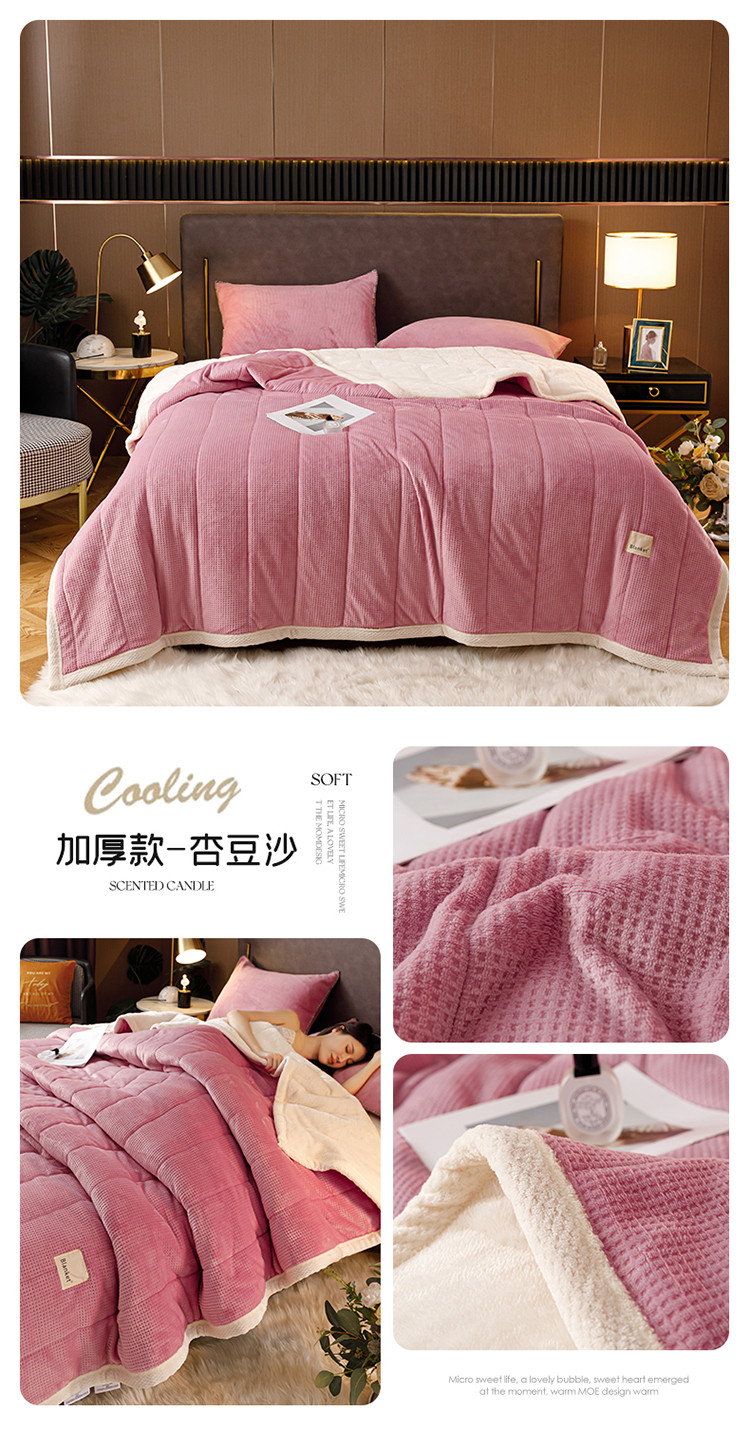 商品名称:莱登卡奴 2022新款华芙绒北极绒三层夹棉绗绣加厚毛毯盖毯 加厚款-杏豆沙