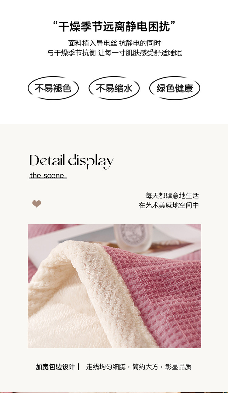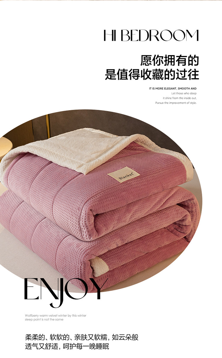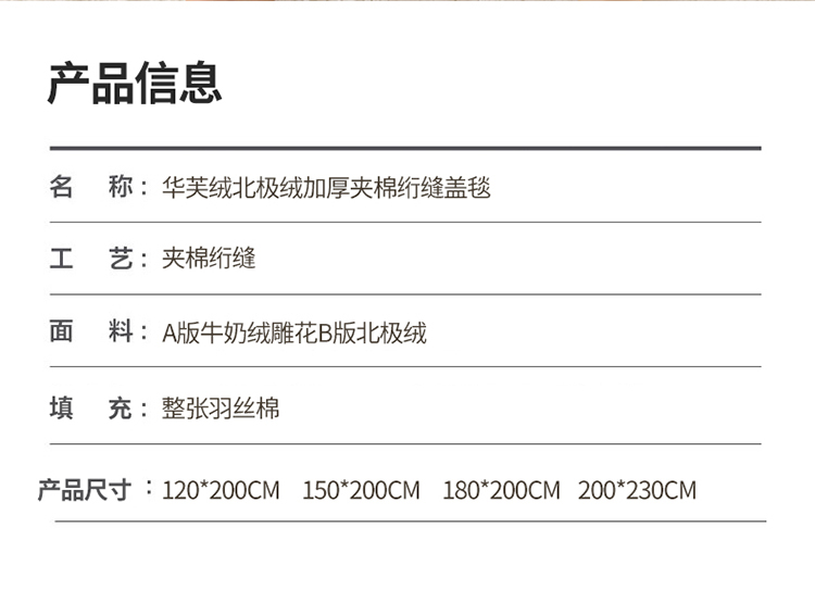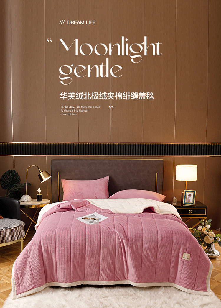 商品名称:莱登卡奴 2022新款华芙绒北极绒三层夹棉绗绣加厚毛毯盖毯 加厚款-杏豆沙